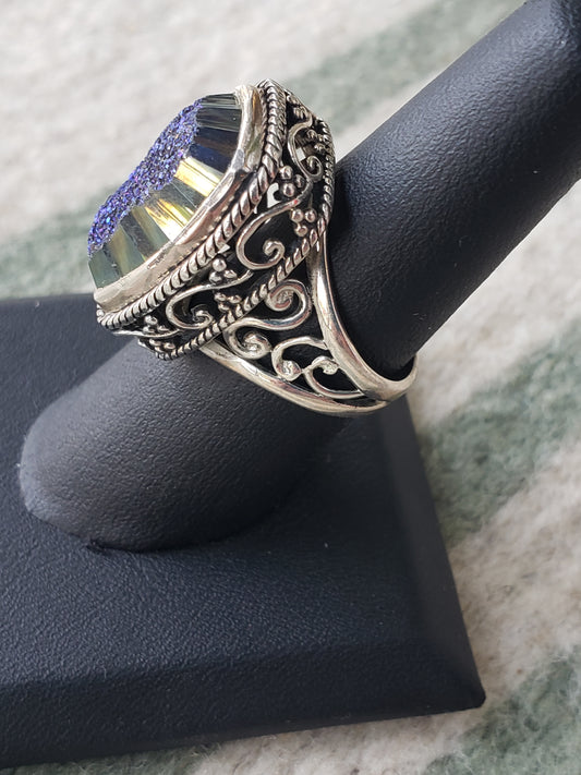 Sterling Silver 5.72ct Aquamarine, Blue Diamond and Topaz Statement Ring