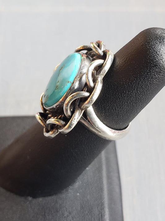 Sterling Turquoise ring with Chain design size 5.5