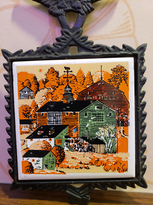 Farm Scene Cast Iron Trivet with Porcelain Tile