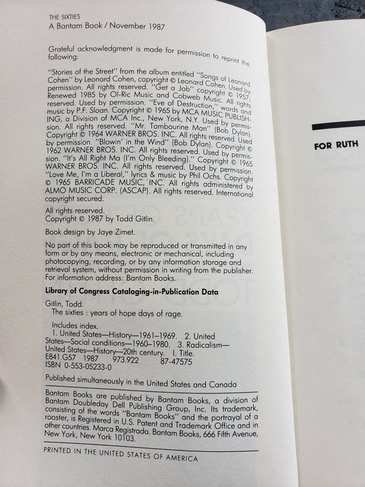 The Sixties, Years of Hope, Days of Rage by Todd Gitlin