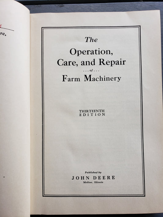 The Operation, Care and Repair of Farm Machinery Thirteenth Edition,