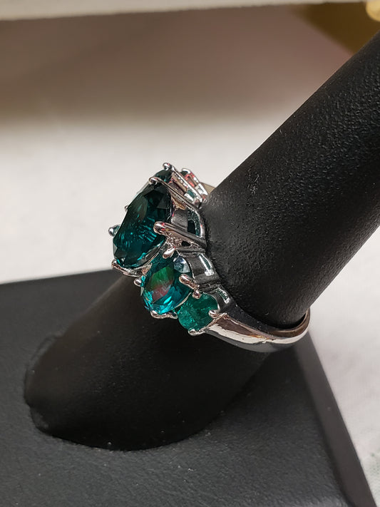 .925 Sterling ring teal stones size 7.5
