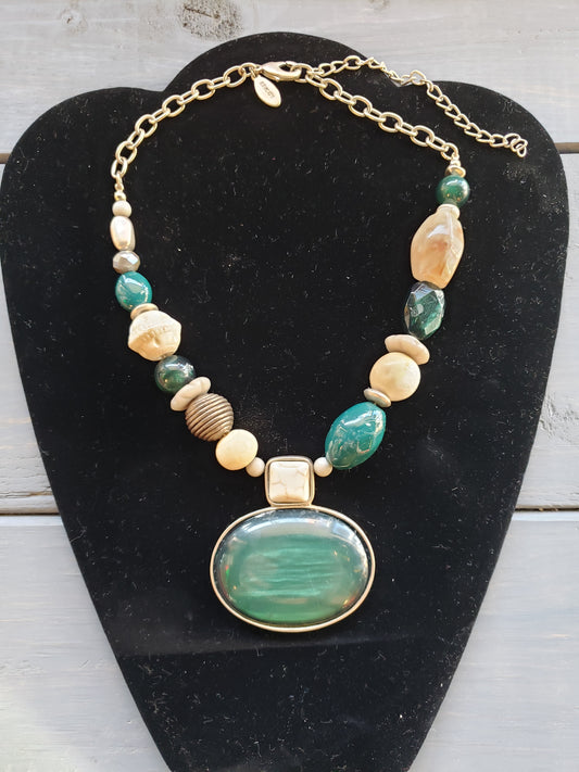 Chico's Green and Goldtone bead necklace