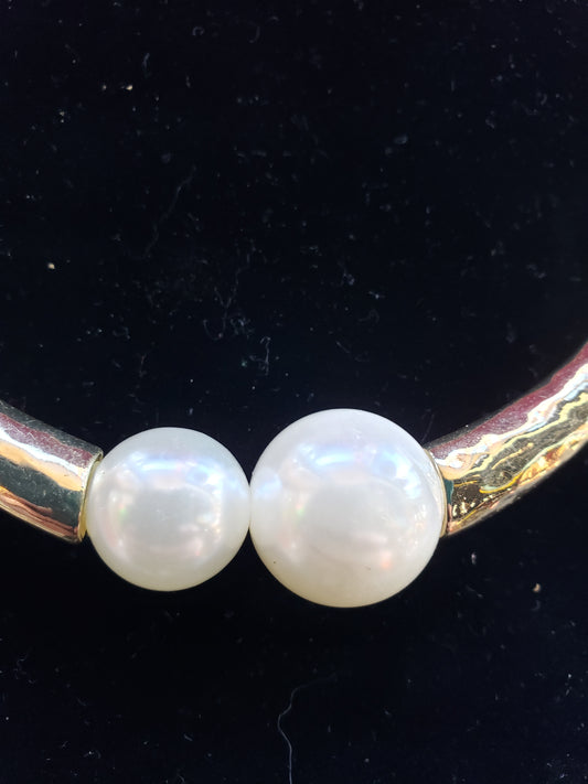 Chico's Statement necklace goldtone with two white beads