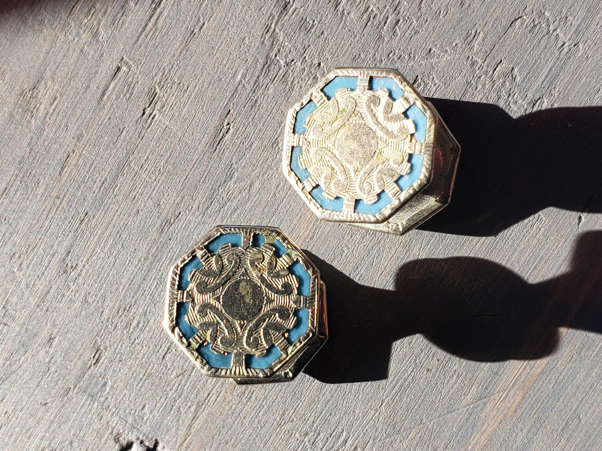 Add a touch of vintage sophistication to your formal attire with our 1920s Silver and Blue Enamel Snap Cuff Link Set. The intricate silver and blue enamel design exudes elegance and timeless charm. Perfect for any special occasion or a unique gift for the discerning gentleman.