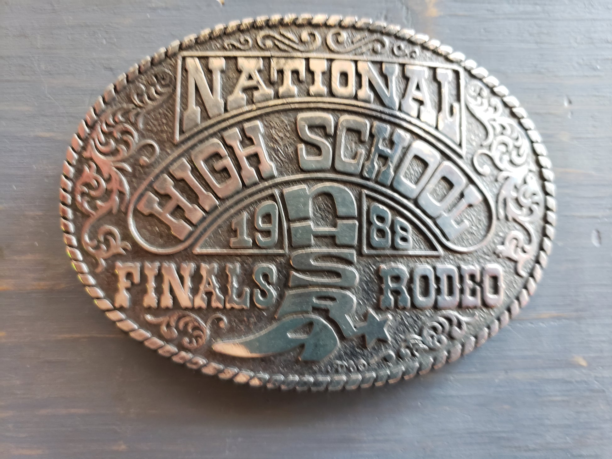 Celebrate a piece of rodeo history with this 1988 National High School Finals Rodeo belt buckle. As a First Edition Limited Collector’s item, it honors the inaugural NHSFR telecast, making it a rare find for enthusiasts. Pre-owned and in fair condition, this buckle offers authentic vintage charm and a unique connection to a landmark event in rodeo broadcasting. Perfect for collectors or fans looking to showcase their passion with a meaningful keepsake.