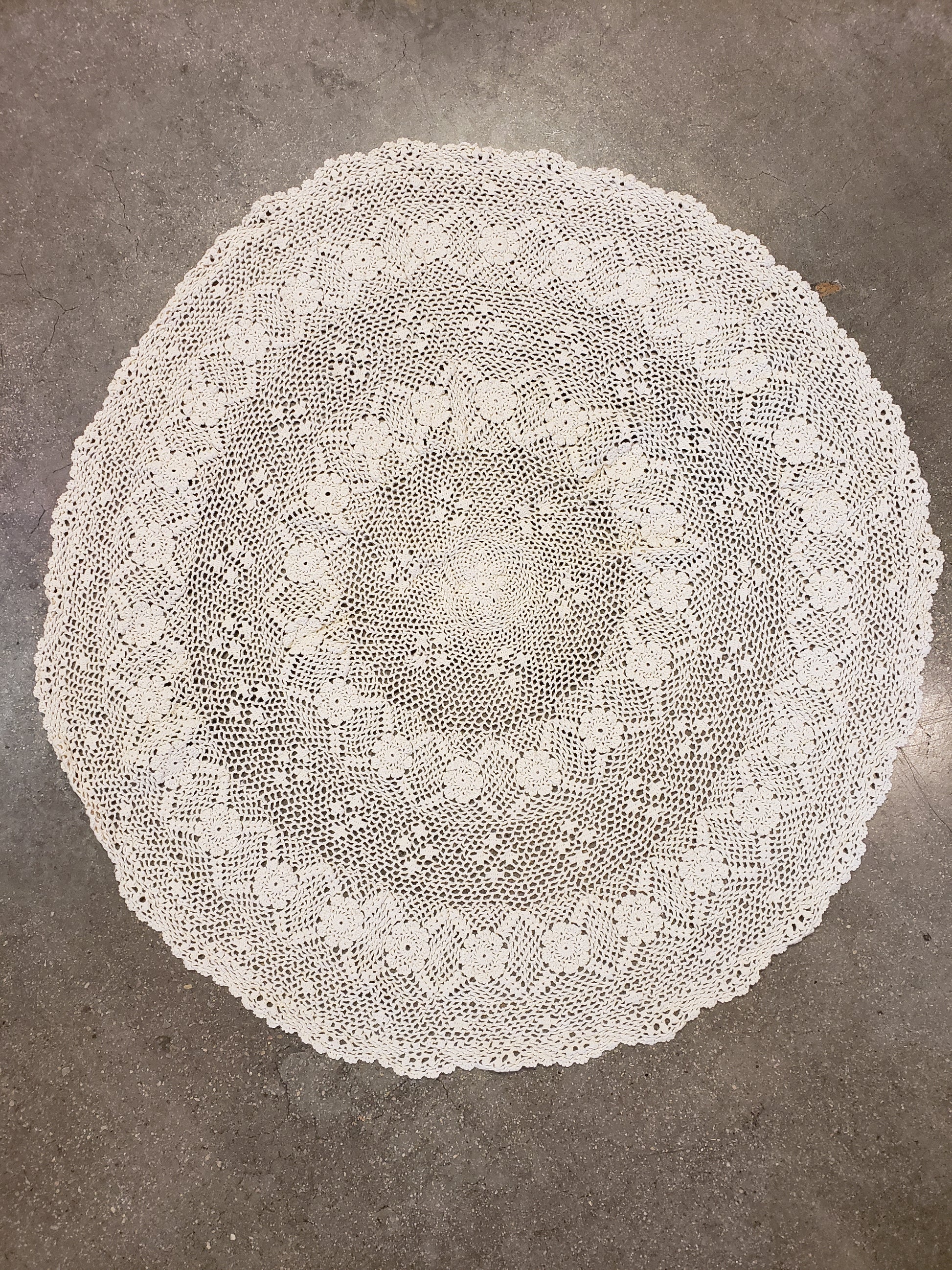 Elevate your home décor with this elegant 27-inch round crochet tablecloth, showcasing an intricate floral design. Crafted with meticulous detail and in excellent condition, it offers a timeless, refined accent that enhances any table setting with understated sophistication. Fair vintage condition.