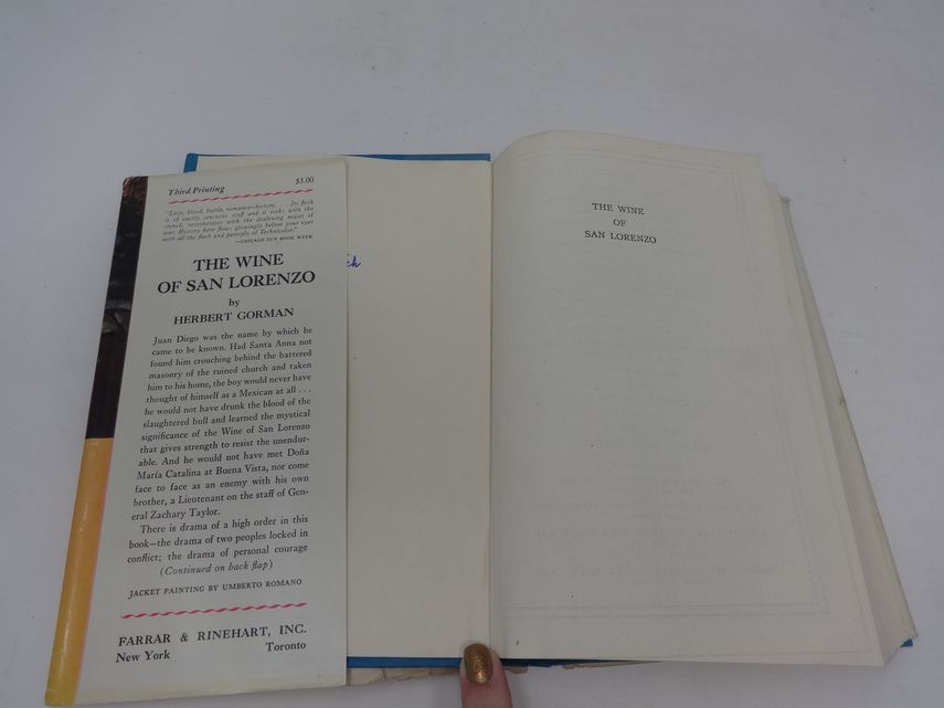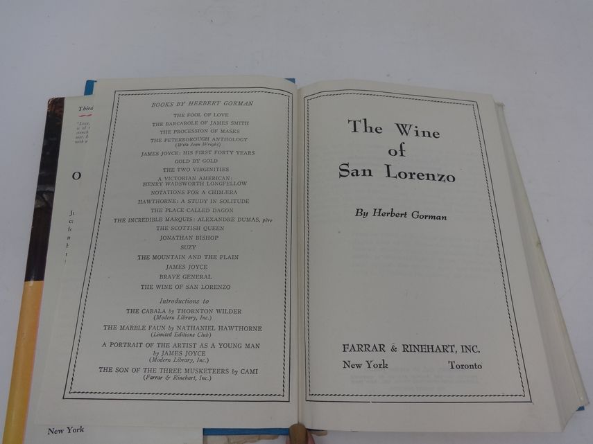 Herbert Gorman The Wine of San Lorenzo. Copyright 1945. Book is in fair used condition.
