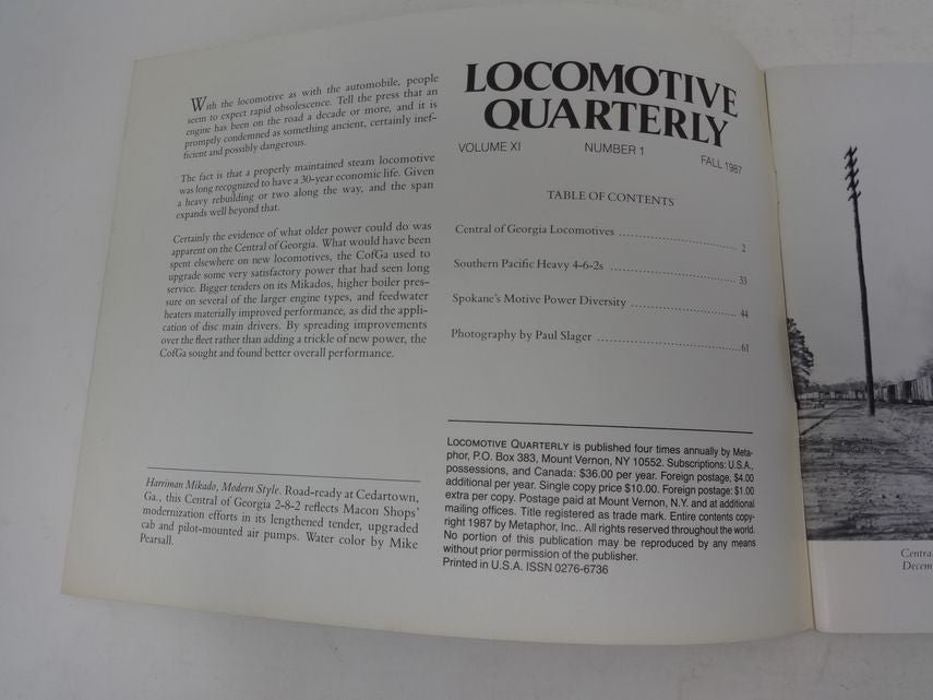 Locomotive Quarterly, Fall 1987 Volume XI Number 1. Paperback in Good Condition.