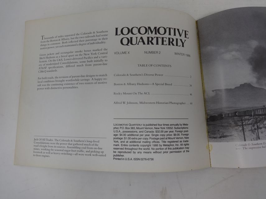 Locomotive Quarterly, Winter 1986 Volume X Number 2. Cover has some wear, book in good condition.