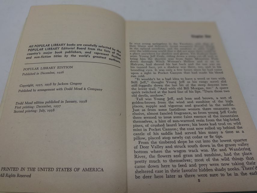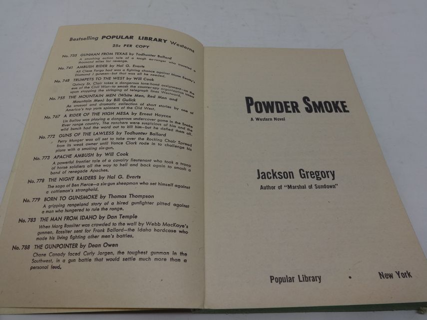 Powder Smoke, by Jackson Gregory. Popular Library Edition, published December 1956. Fair vintage condition.