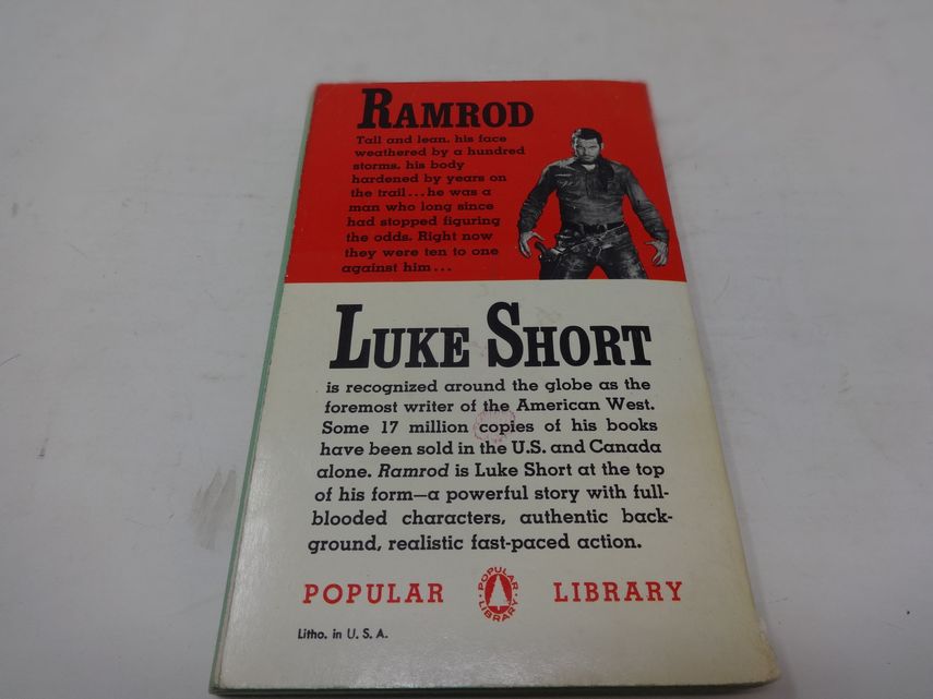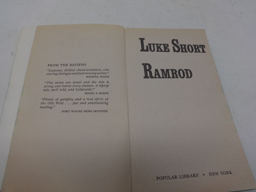 Ramrod, by Luke Short. 9th printing by Popular Library, January 1963. The binding is loose at the front cover.