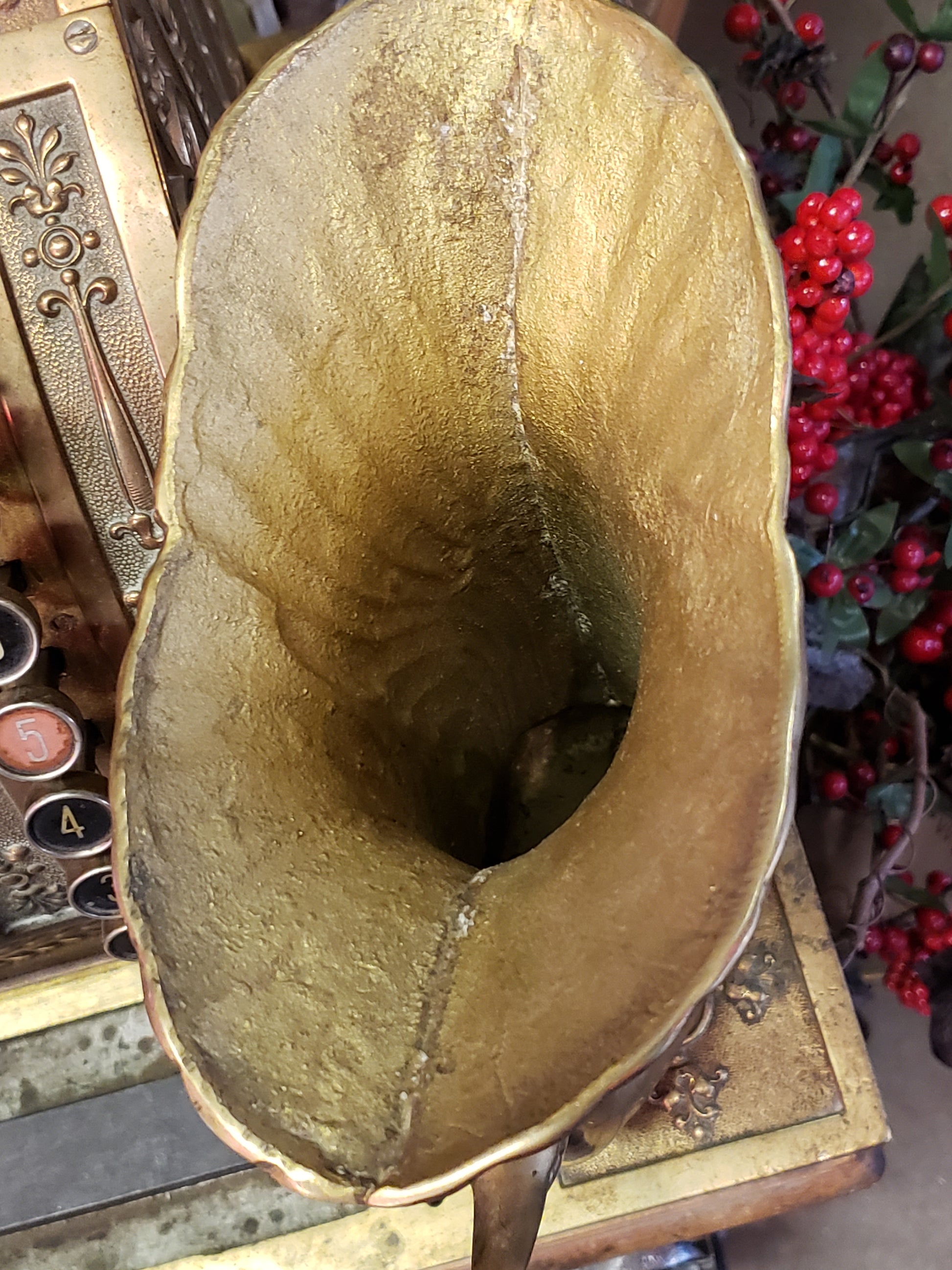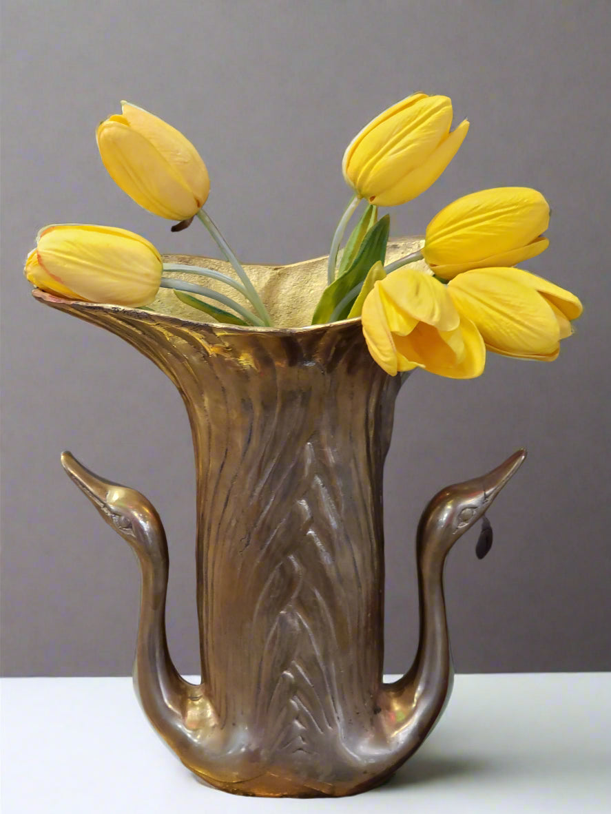 Add a touch of elegance and charm to your home decor with our Brass Double Swan vase! Crafted with vintage, solid brass, this vase features two swans with intertwined wings. The perfect addition for any living room or dining table, it's sure to impress your guests and add a unique touch to any space. MCM decor, fair vintage condition. Stands 10 inches tall. Would make a lovely wedding gift for those who enjoy antiques.