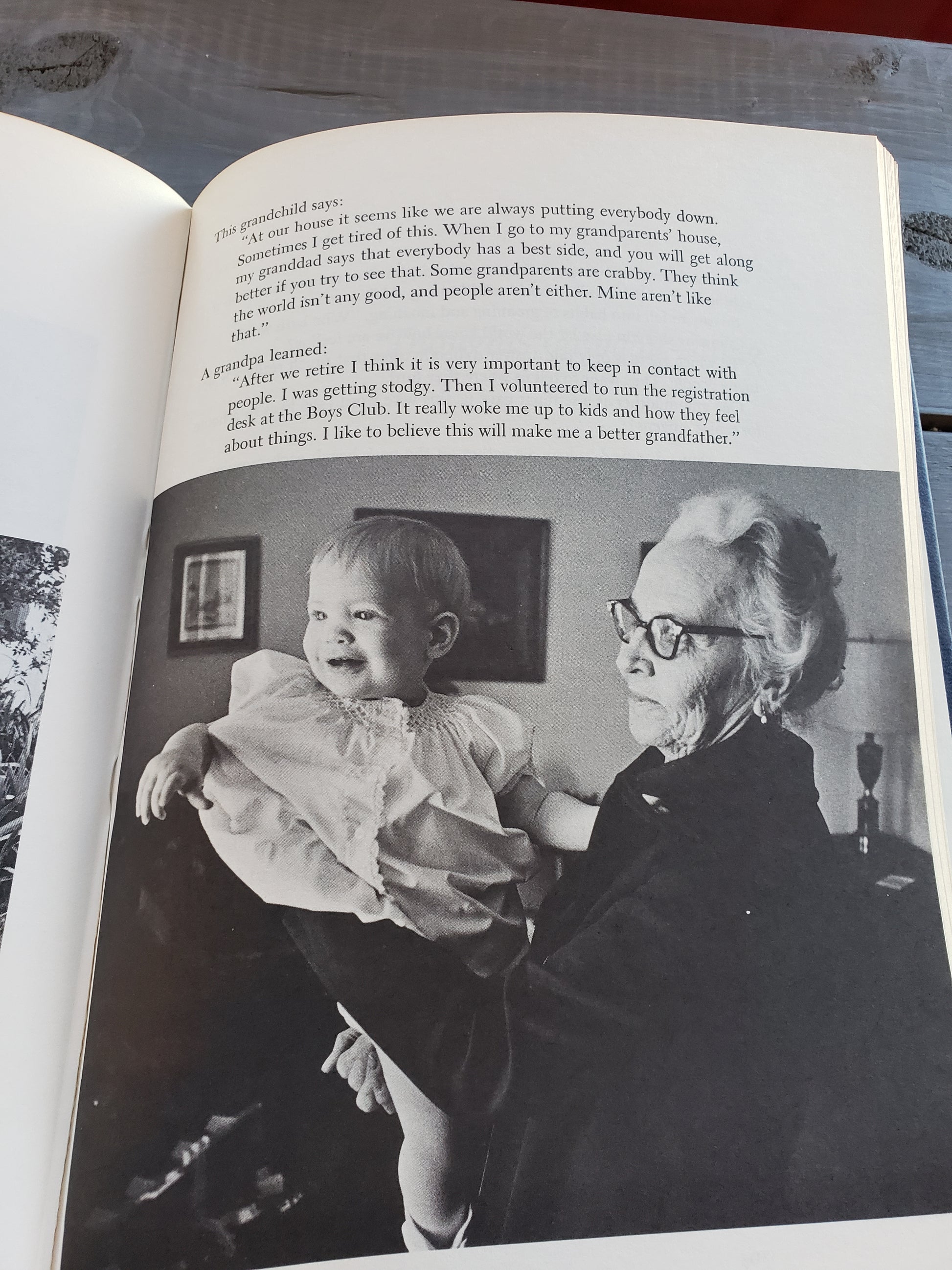 Grandparents, a 140 page hardback describing the greatest things about Grandparents, from a kind listening ear, imparting wisdom and advice, baby-sitting, teaching the next generations, lessons in patience and respect, and so much more. It has black and white illustrations of grandparents and their grand kids. Fair used condition. A nice book to remind you of how important Grandparents are and how lucky if you still have them in your life.