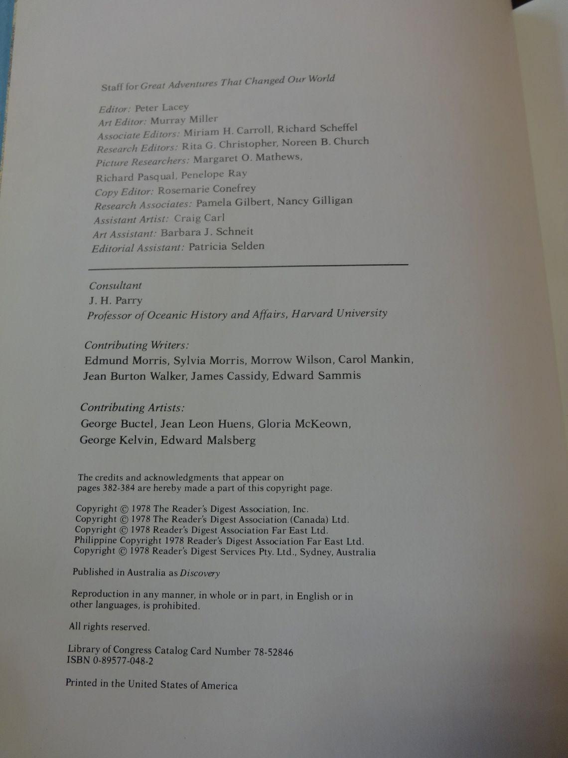 Great Adventures that Changed the World, by Reader's Digest. 1978, 384 page hardback in fair used condition. Lots of full color illustrations.