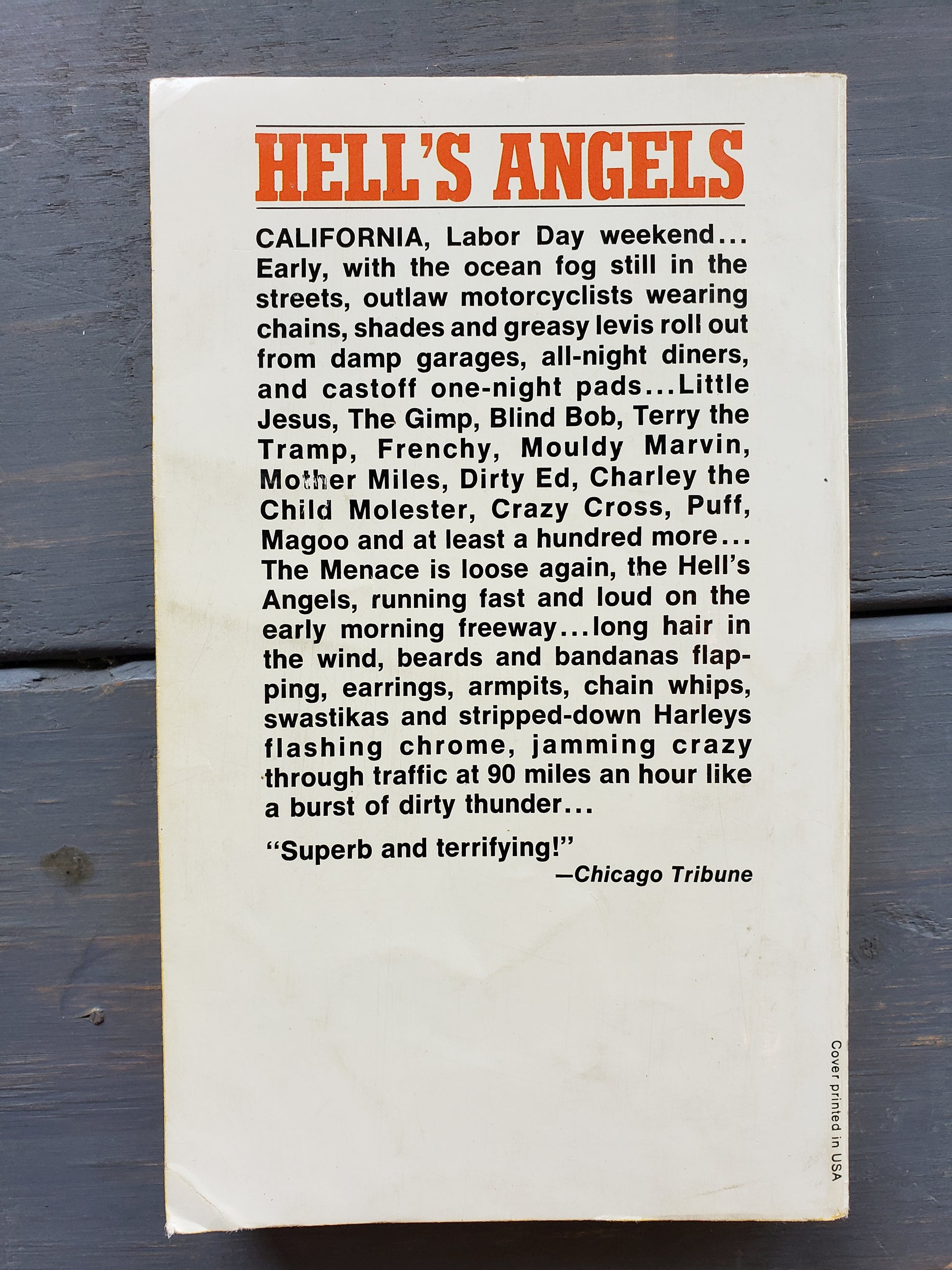 Dive into the raw and unfiltered world of the notorious Hell's Angels through Hunter S. Thompson’s fearless narrative. This gripping account offers an insider’s perspective on the motorcycle gang’s wild lifestyle, exploring the boundaries of freedom and danger. Experience Thompson’s sharp, immersive storytelling that challenges perceptions and reveals the complex reality behind the legend. A must-read for those fascinated by counterculture and thrilling true stories. Pre owned, cover has a tear at bottom.