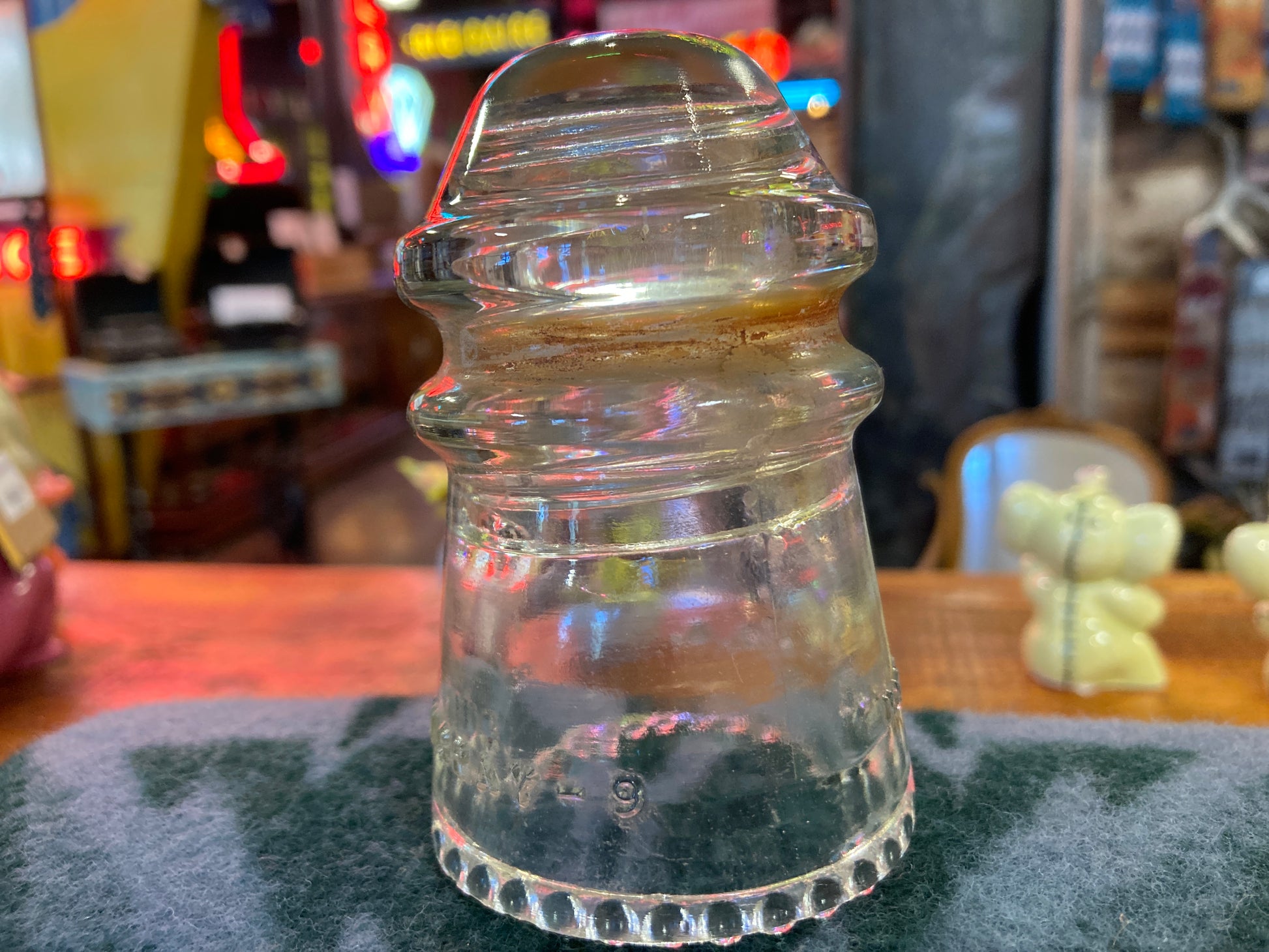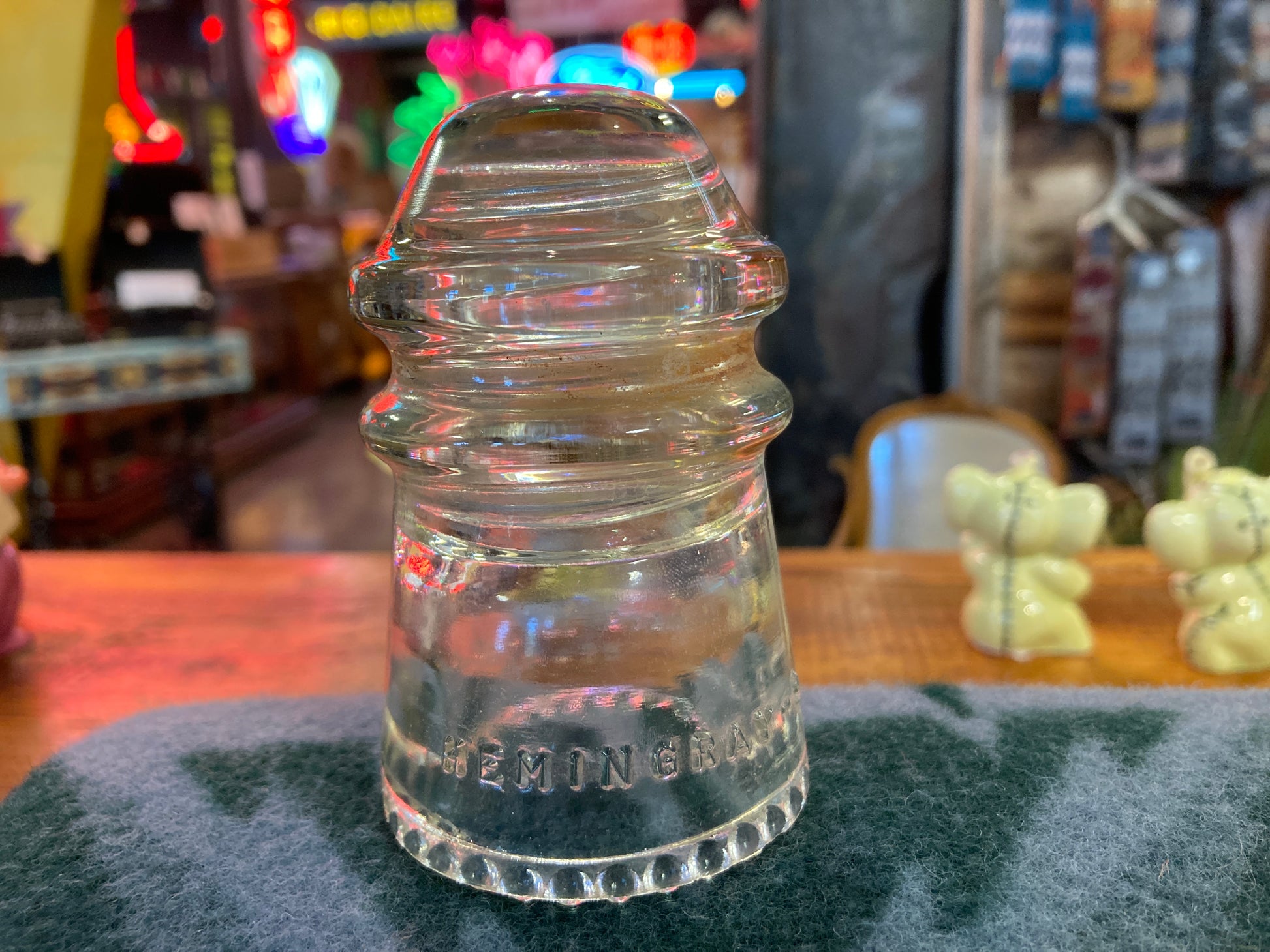 Hemingray - 9 Clear Glass Insulator Made in USA 21-52. 3 1/2 inches tall. Fair used condition.