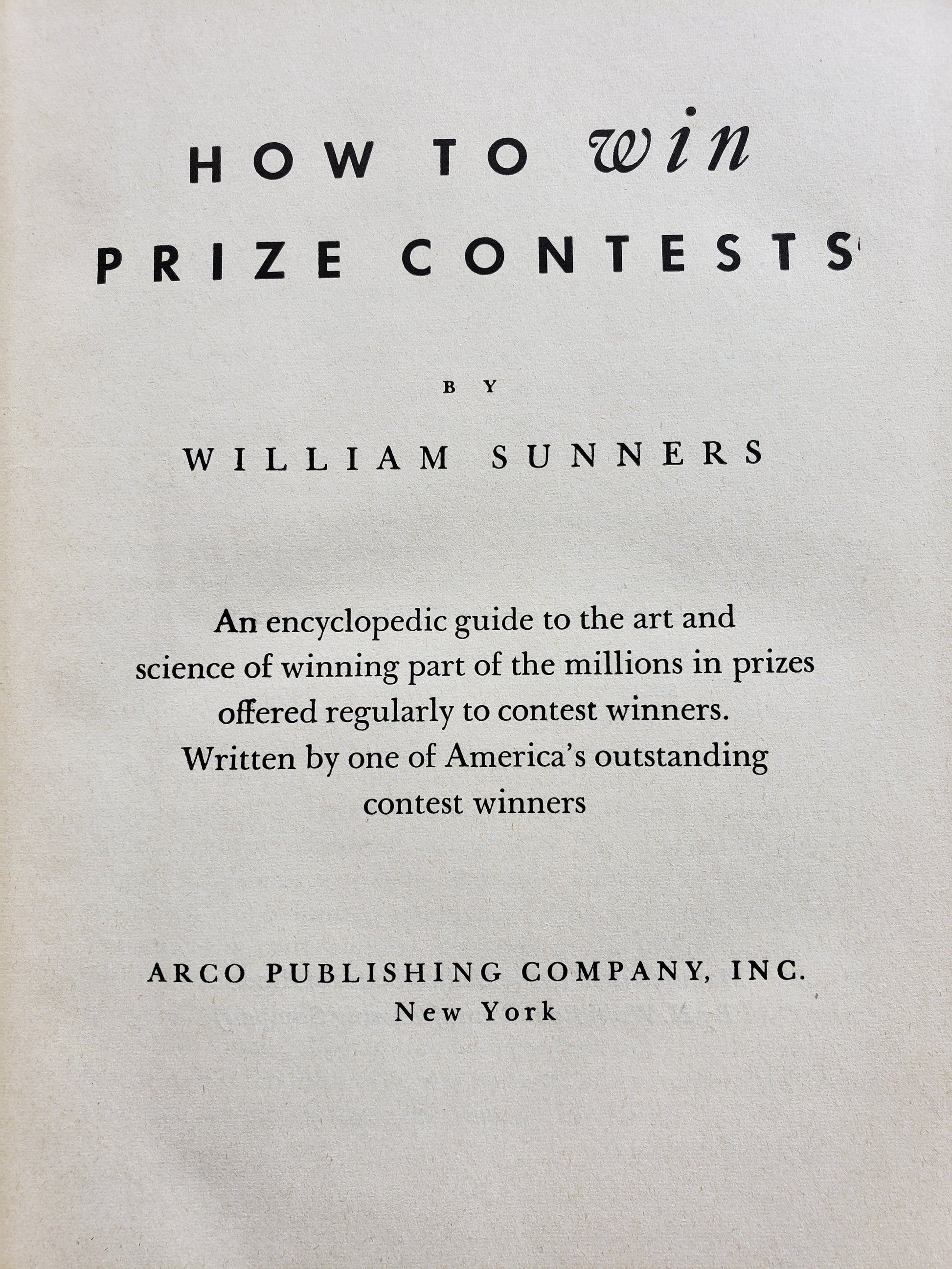 Learn the secrets to winning prize contests with "How to Win Prize Contests" by William Sunners. This 4th printing from 1956 offers 392 pages of valuable advice in fair used condition. Unlock the potential for winning and increase your chances of receiving amazing prizes!