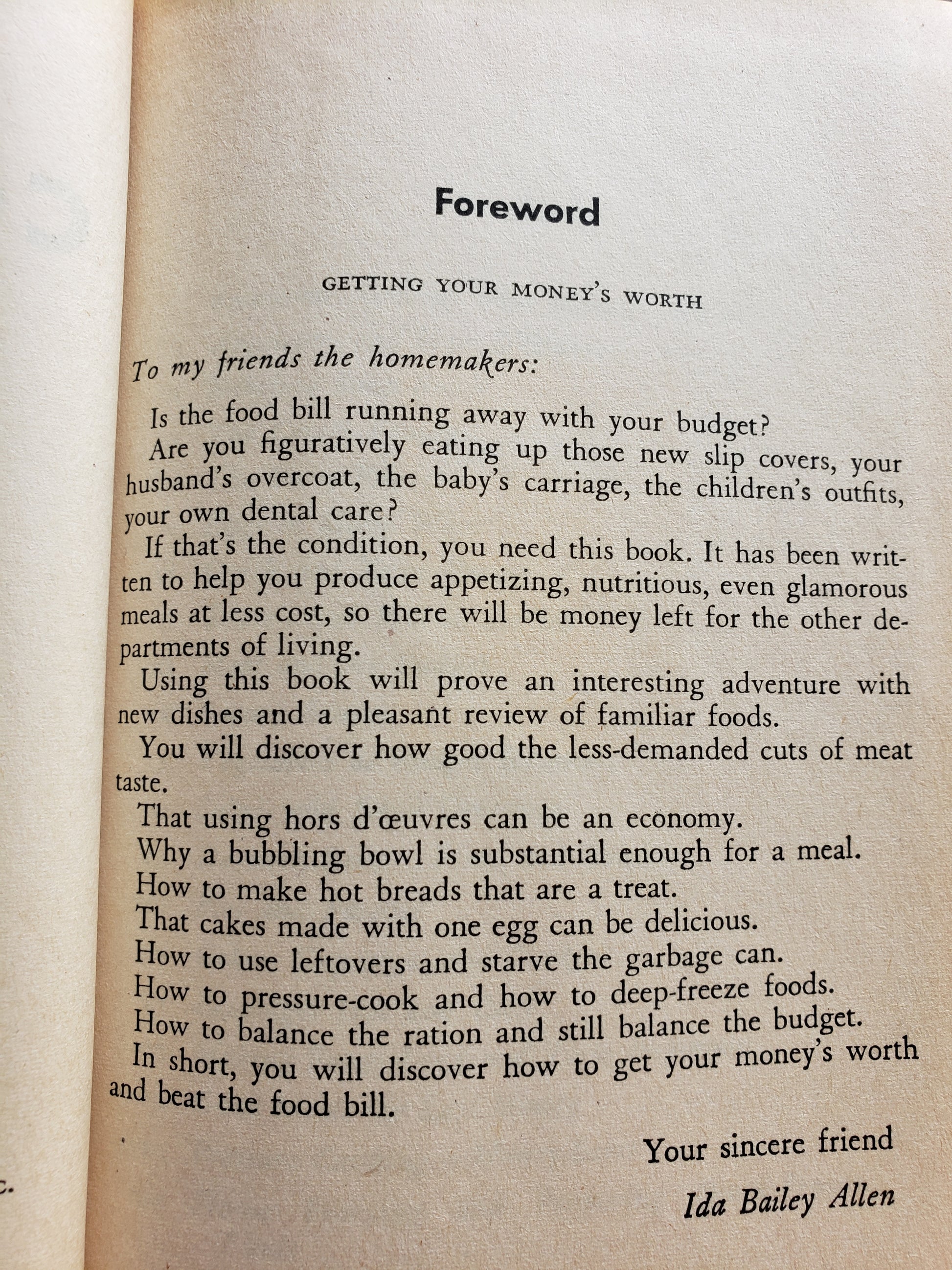 Discover the mouth-watering recipes and budget-friendly meal planning tips in Ida Bailey Allen's Cookbook! Published in 1948, this cute little gem is a must-have for anyone looking to save money while still enjoying delicious meals. Get your copy now and start cooking up a storm! Fair vintage condition.