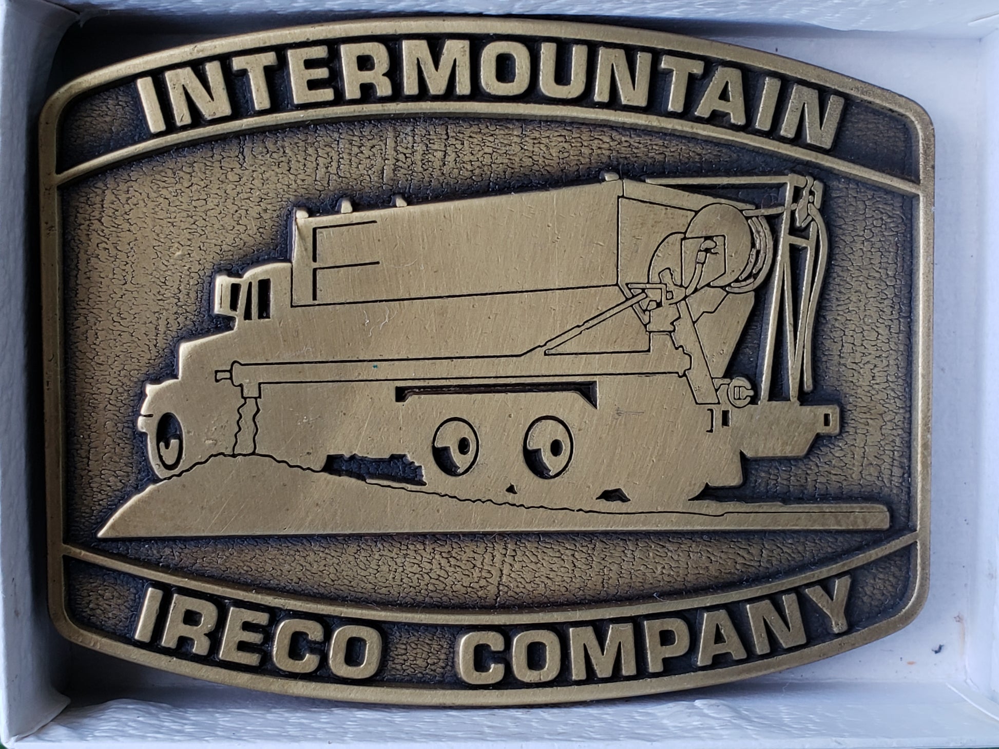 Intermountain IRECO Company brass belt buckle, pre owned, in fair vintage condition.