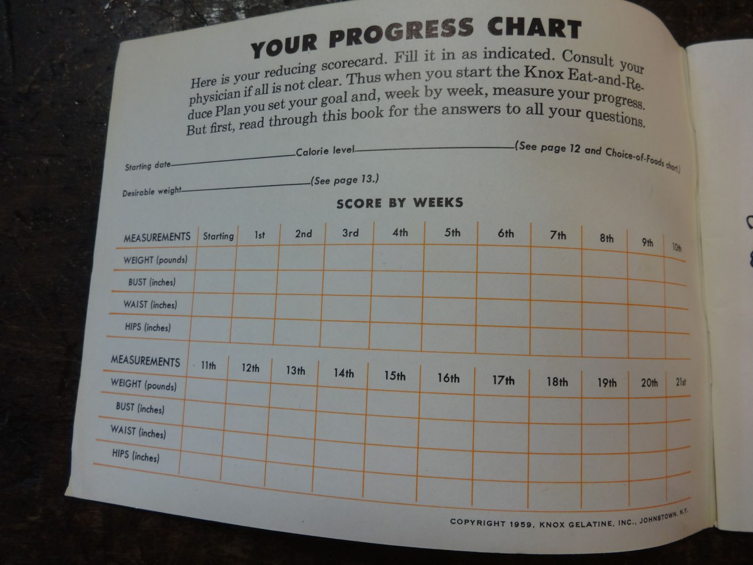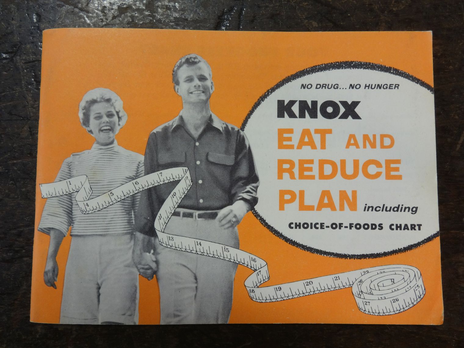 Knox Eat and Reduce Plan cookbook (1959) This is a 34 page diet plan with recipes. Fair vintage condition.