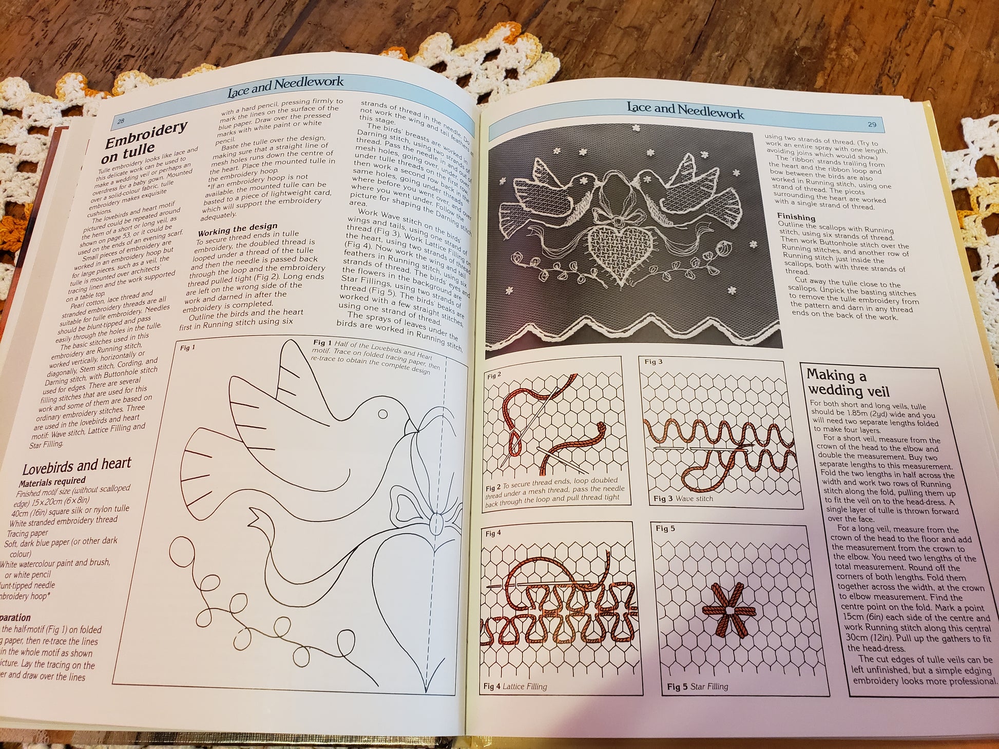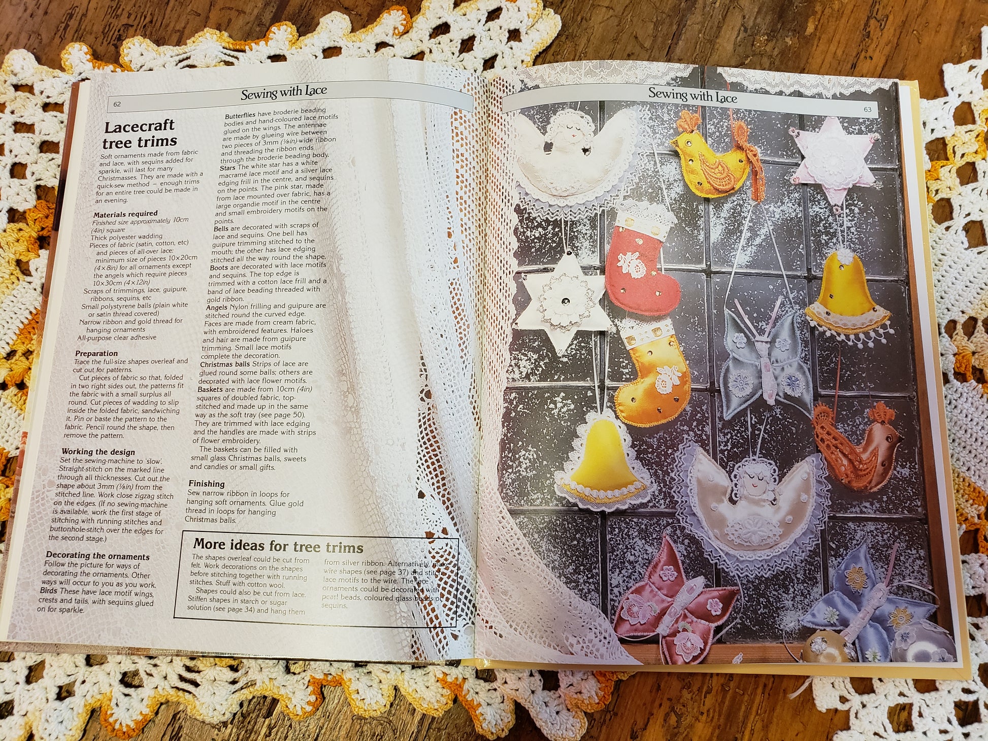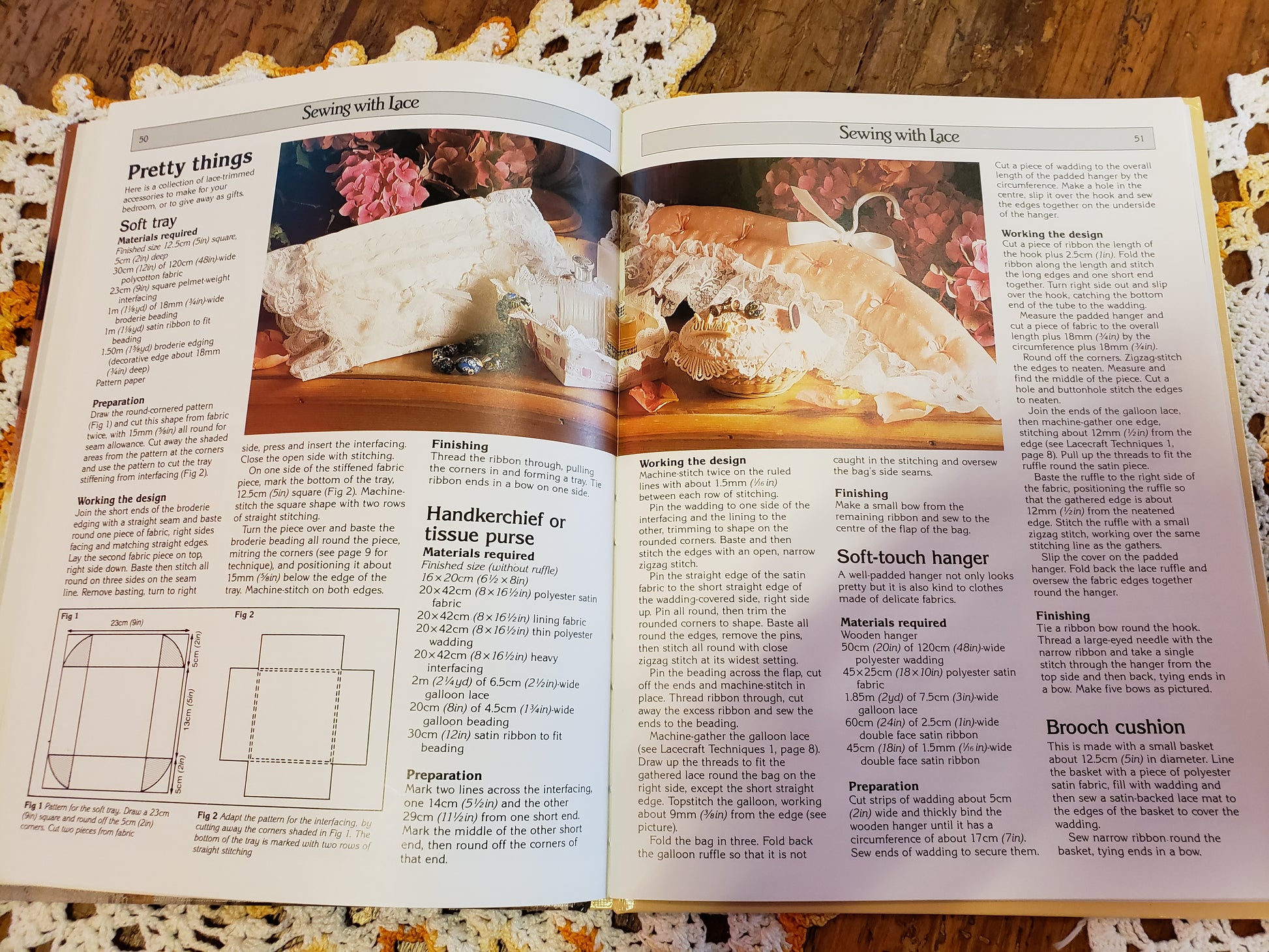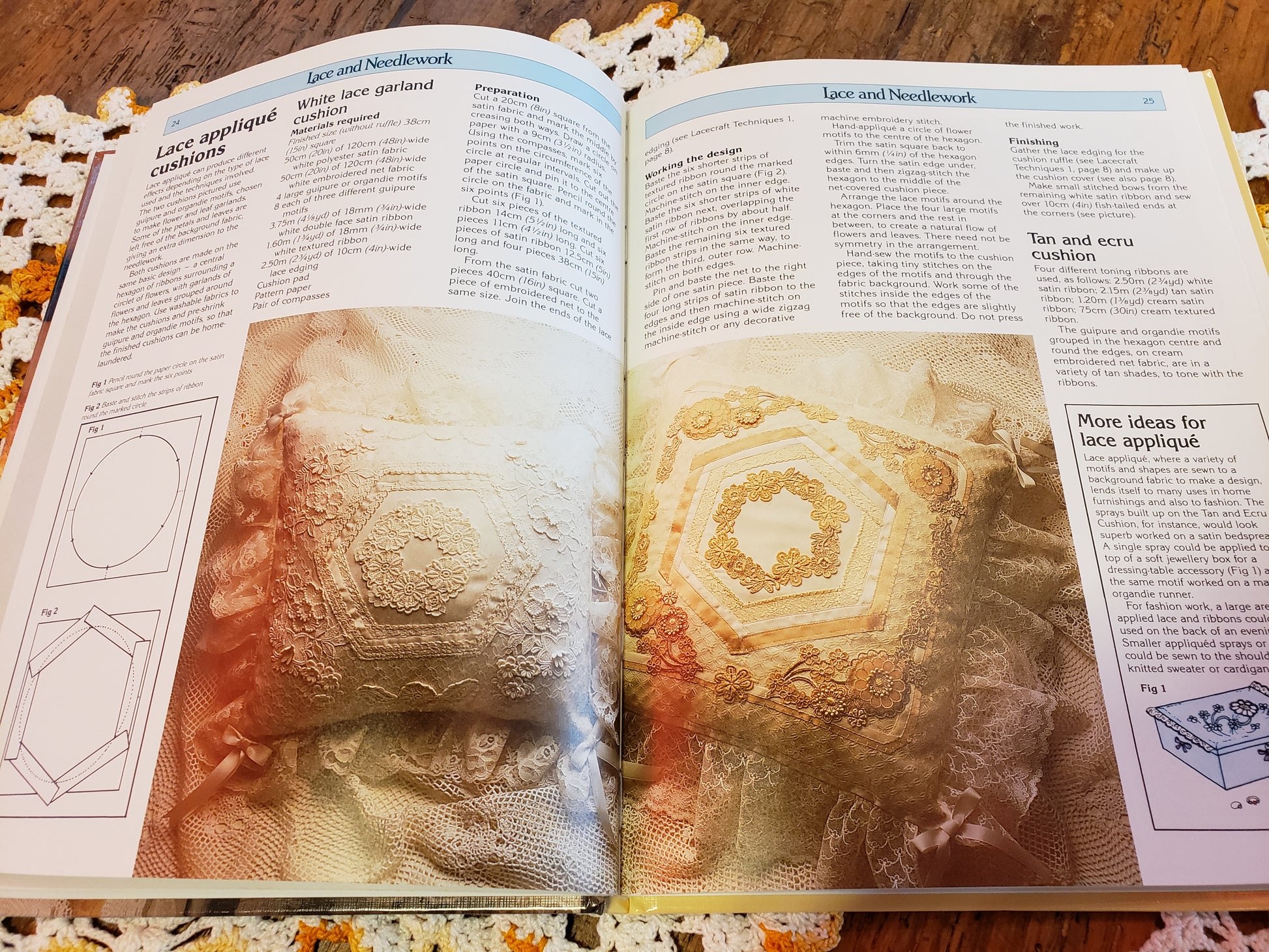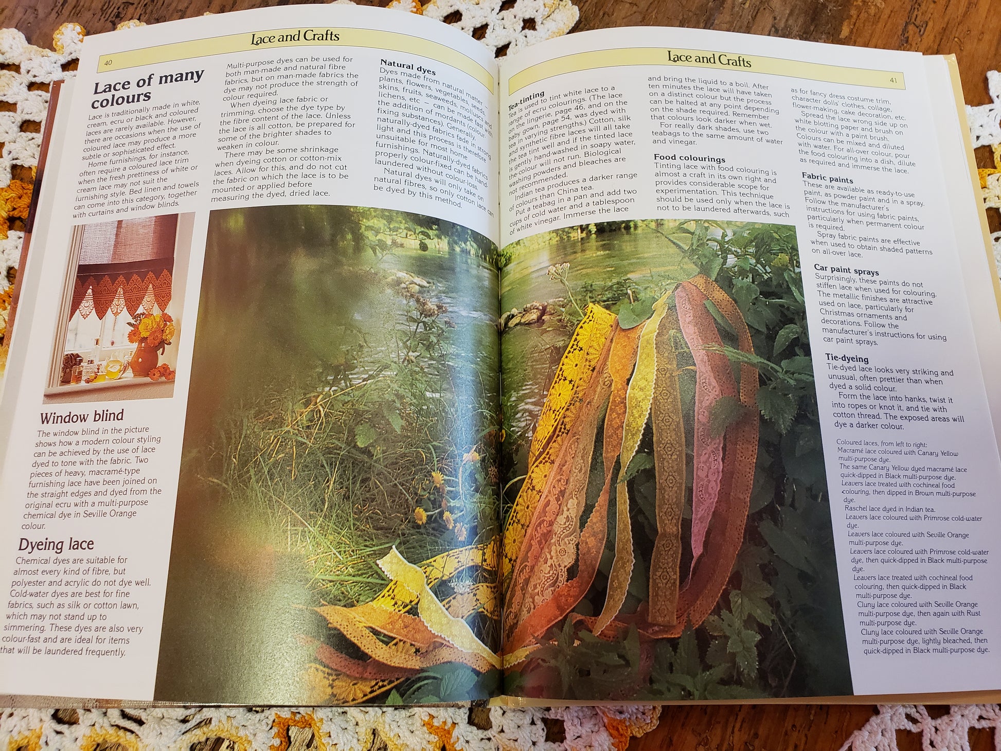Learn about all the crafts you can do with lace, from collage, flower making, jewelry making, dying, beading, embroidering, and so much more. Comes with patterns and design ideas to give you lots of crafting inspiration. This book is hardback with 64 pages, it was published in 1990. It even has patterns for ornaments, christening gowns, kiddie clothes and more. Fair used condition.