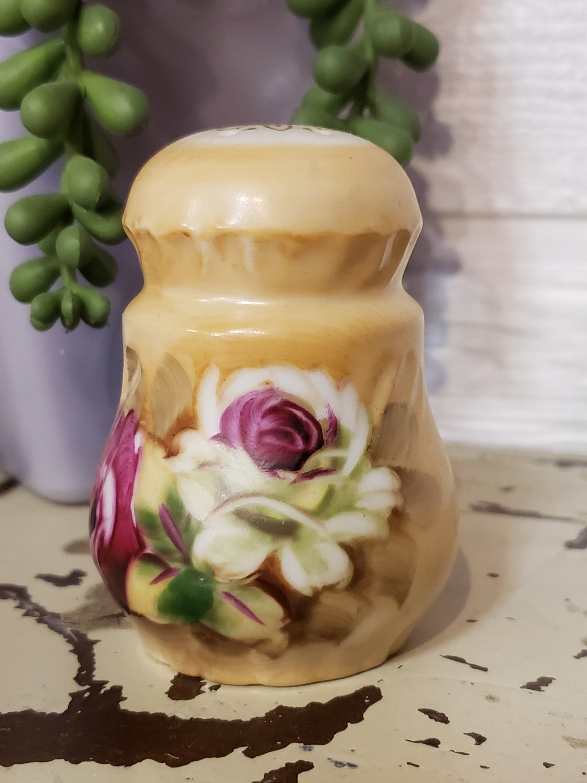 Expertly crafted vintage Lefton porcelain, this floral shaker showcases delicate roses for a touch of elegance. Perfect for adding a dash of vintage charm to any table setting. Enhance your dining experience with this beautiful and unique piece. Single shaker is 2.75 inches tall. Fair vintage condition. RECENTLY REDUCED PRICE!