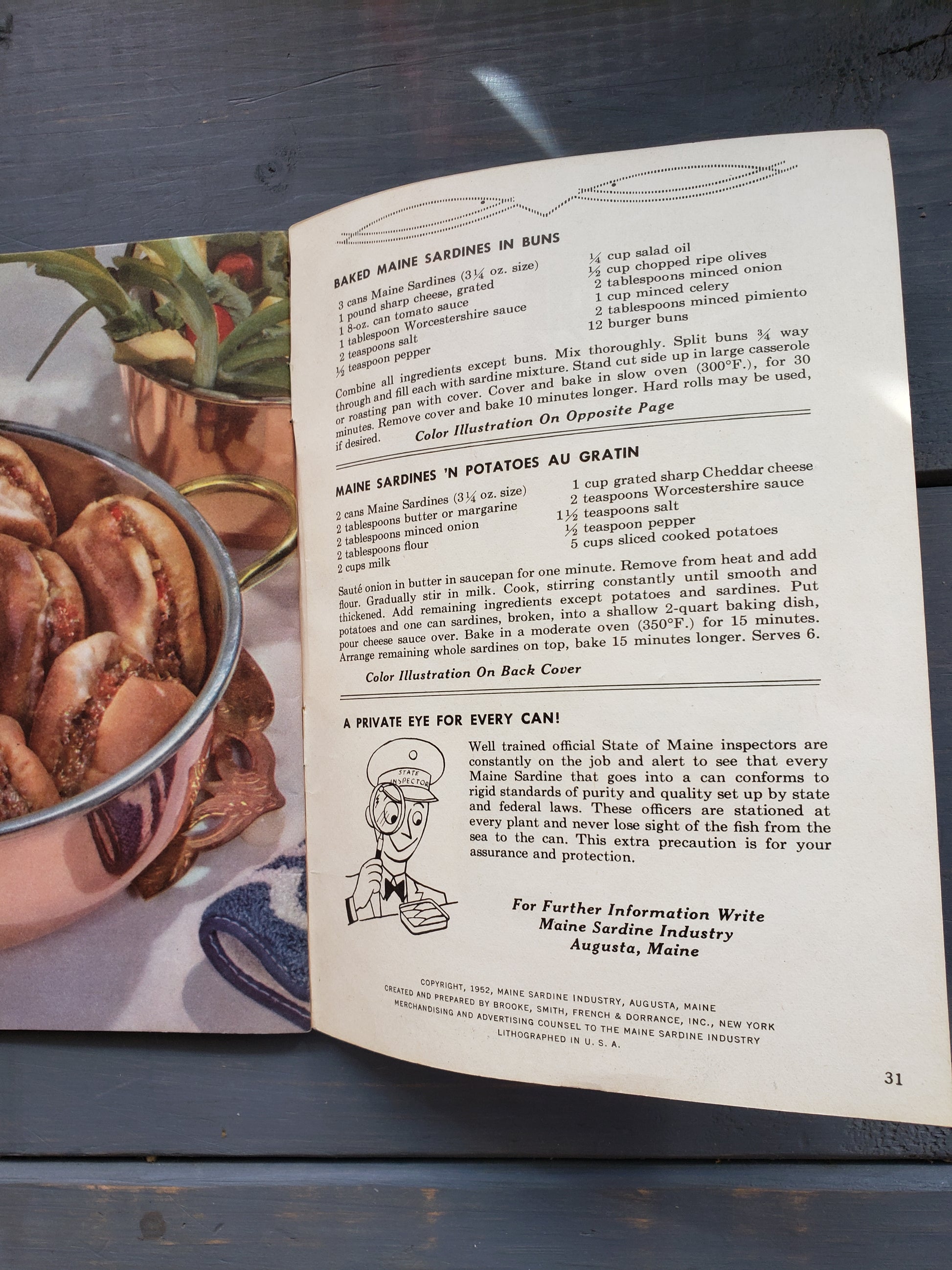 Discover the delicious and nutritious world of Maine sardines with this comprehensive cookbook! Featuring 31 pages of mouth-watering recipes, explore the various uses and preparation techniques of these versatile fish. Perfect for any seafood lover looking to add a healthy and flavorful twist to their meals. Fair vintage condition.