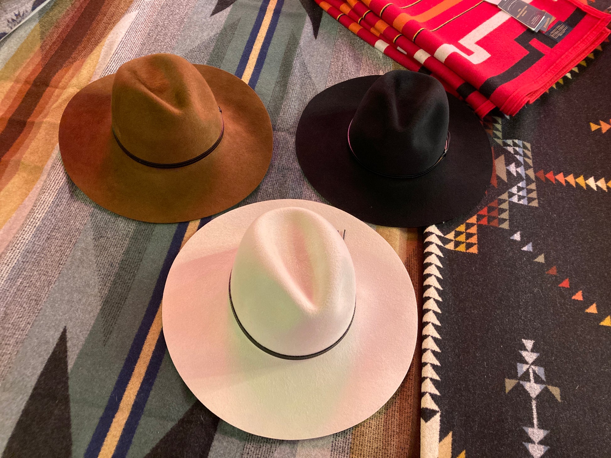 This women's wool hat is made in America from soft, crushable felt that holds up to packing and travel. Naturally water resistant. Colors are: Black, Bone, Whiskey.
