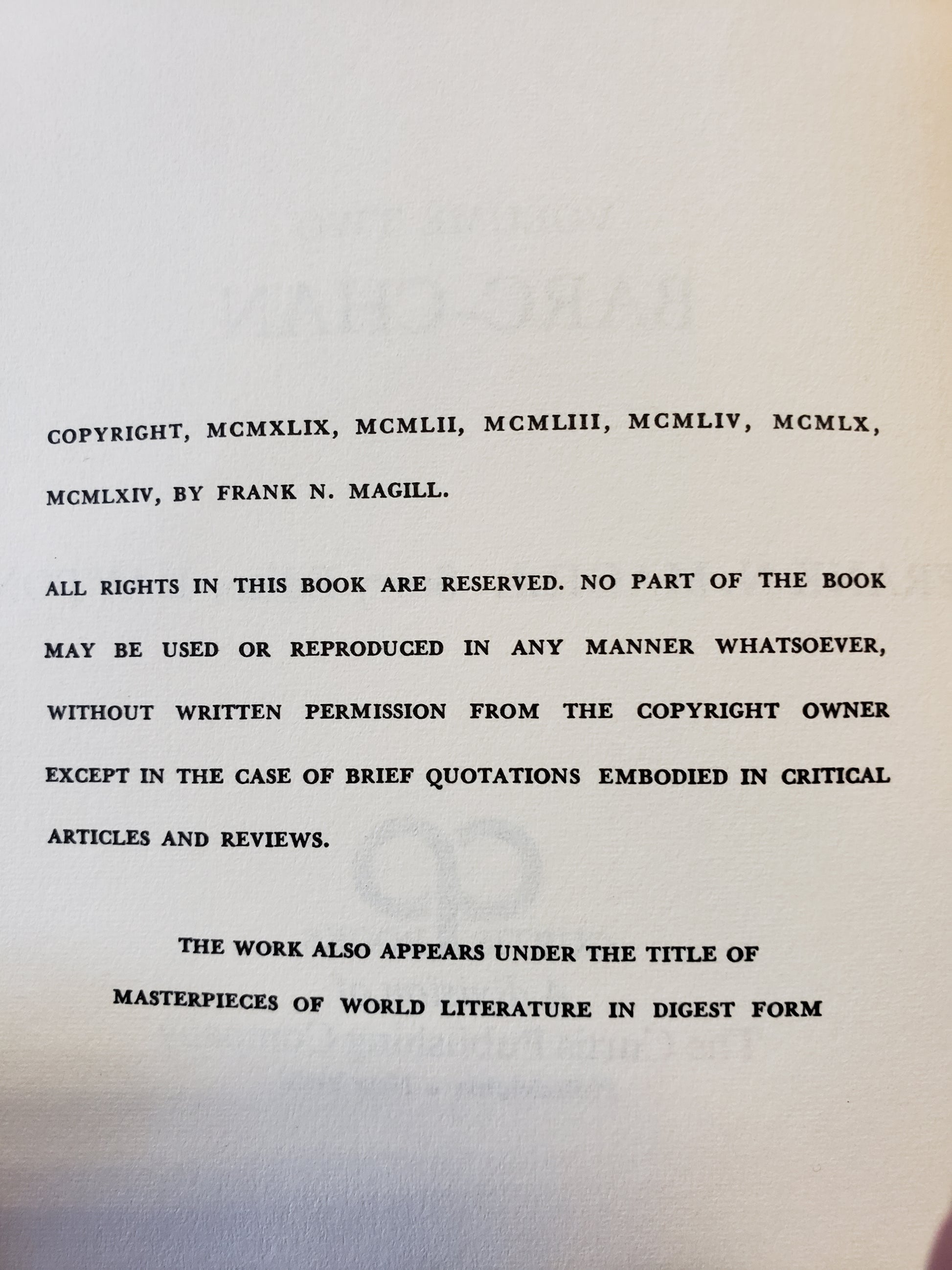 MASTERPLOTS Digests of World Literature Volume Two
