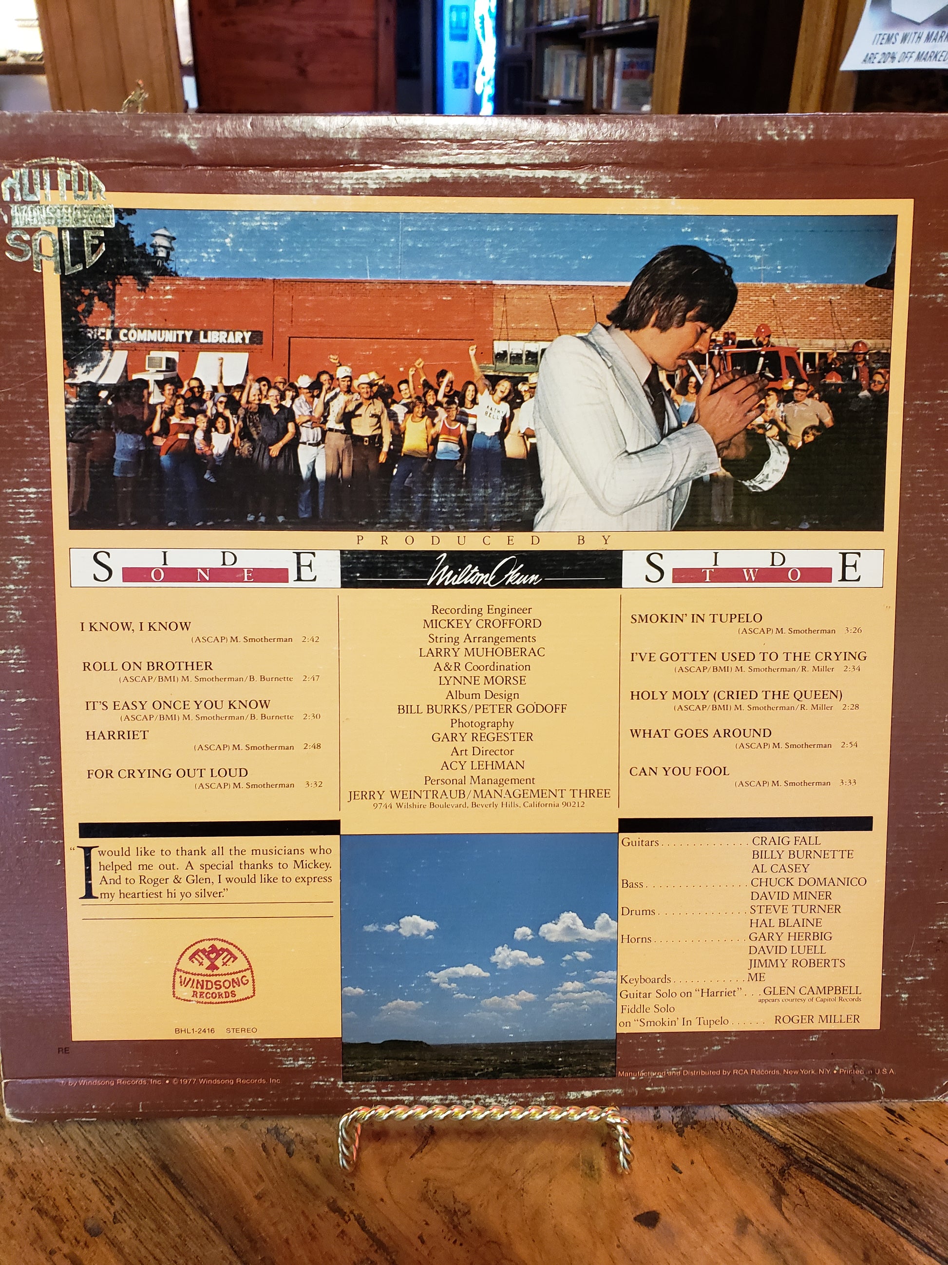 Michael Smotherman self titled album. The cover is quite worn, but the vinyl is in fair used condition. 1977 Windsong Records.