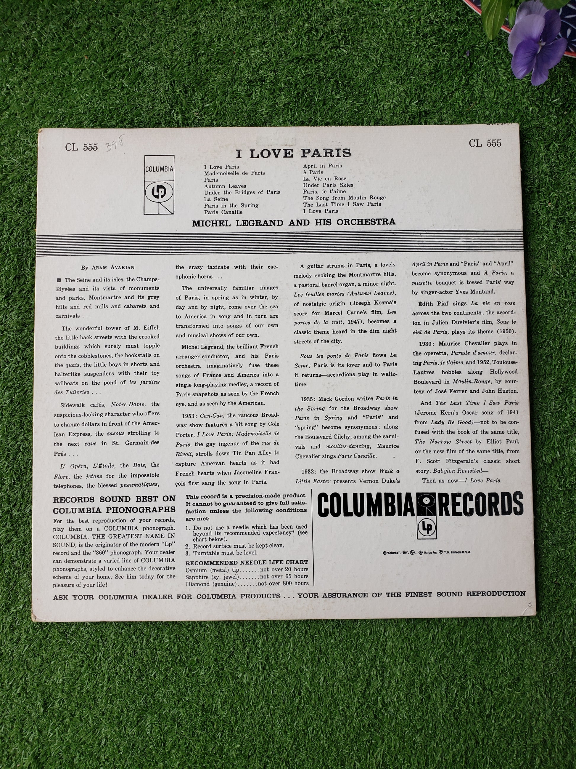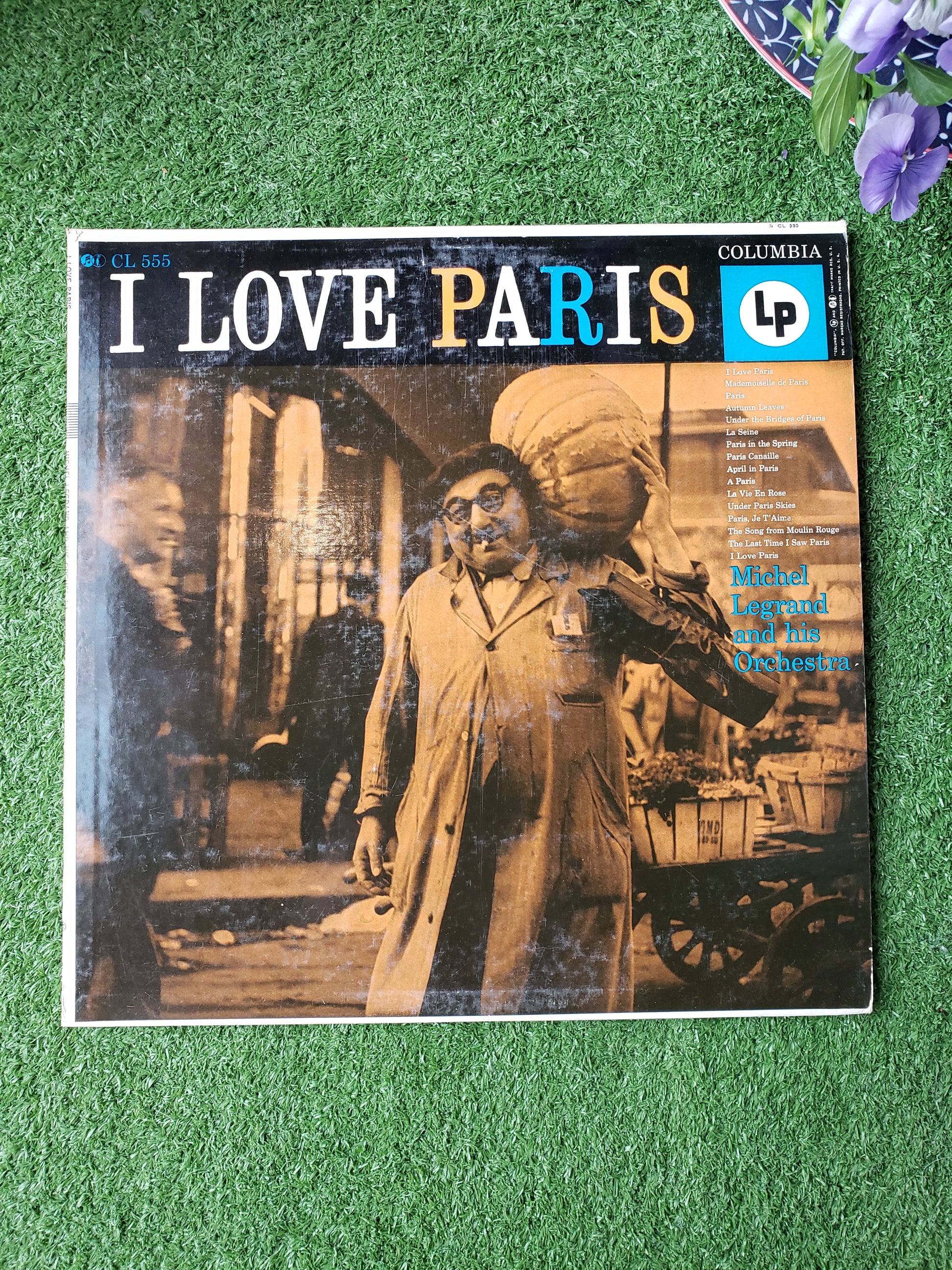 Michel Legrand, I Love Paris lp. Vintage record album, the vinyl is in great shape, the cover a bit faded. 1950's French themed music in fair condition.