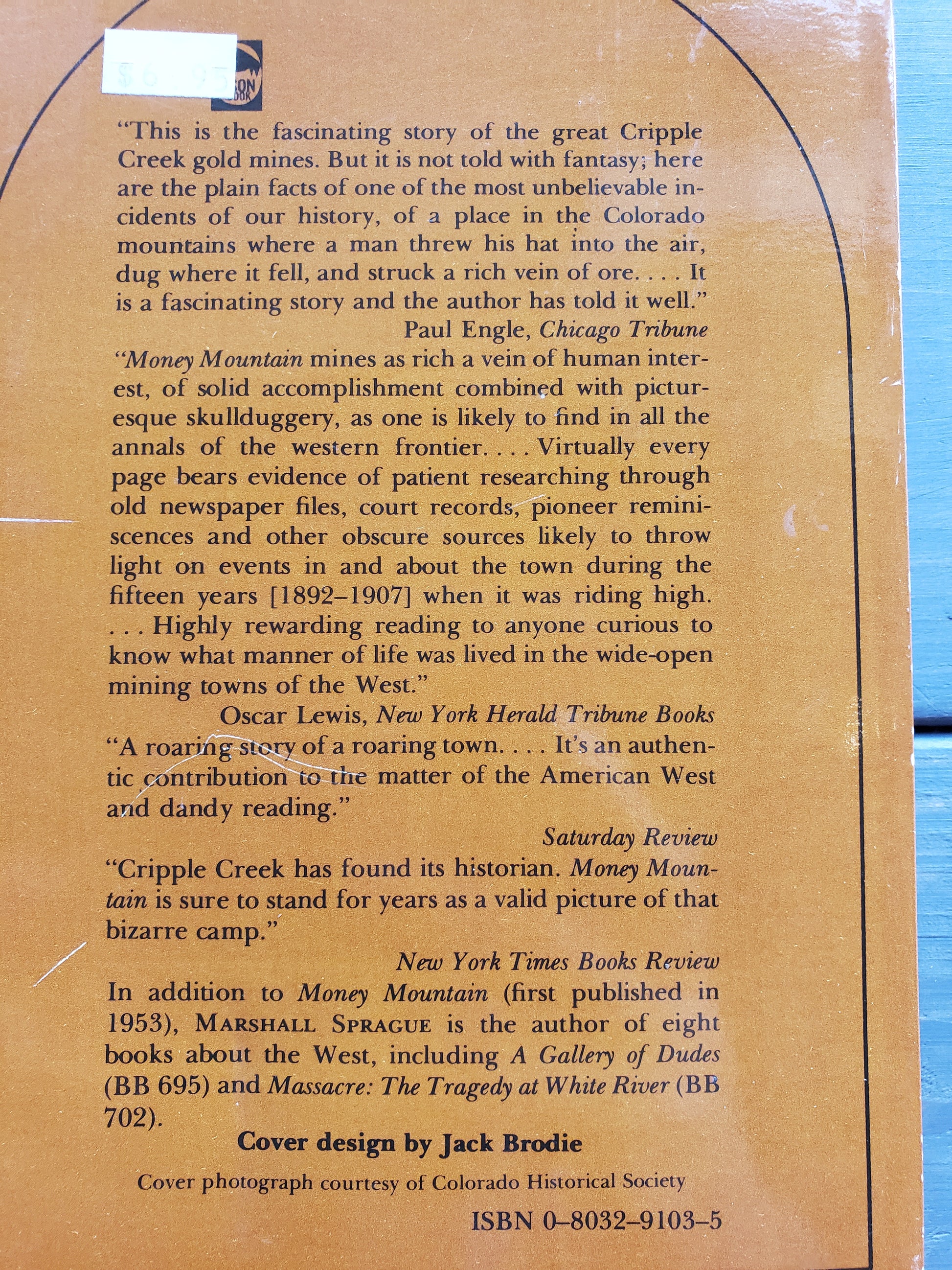 Discover the rich history of Cripple Creek Gold with Marshall Sprague's "Money Mountain". In this 342 page paperback, be captivated by the enthralling tale of the rise of this famous mining town. Experience the excitement and adventure of the gold rush through the passionate and immersive writing of Sprague. Fair condition.