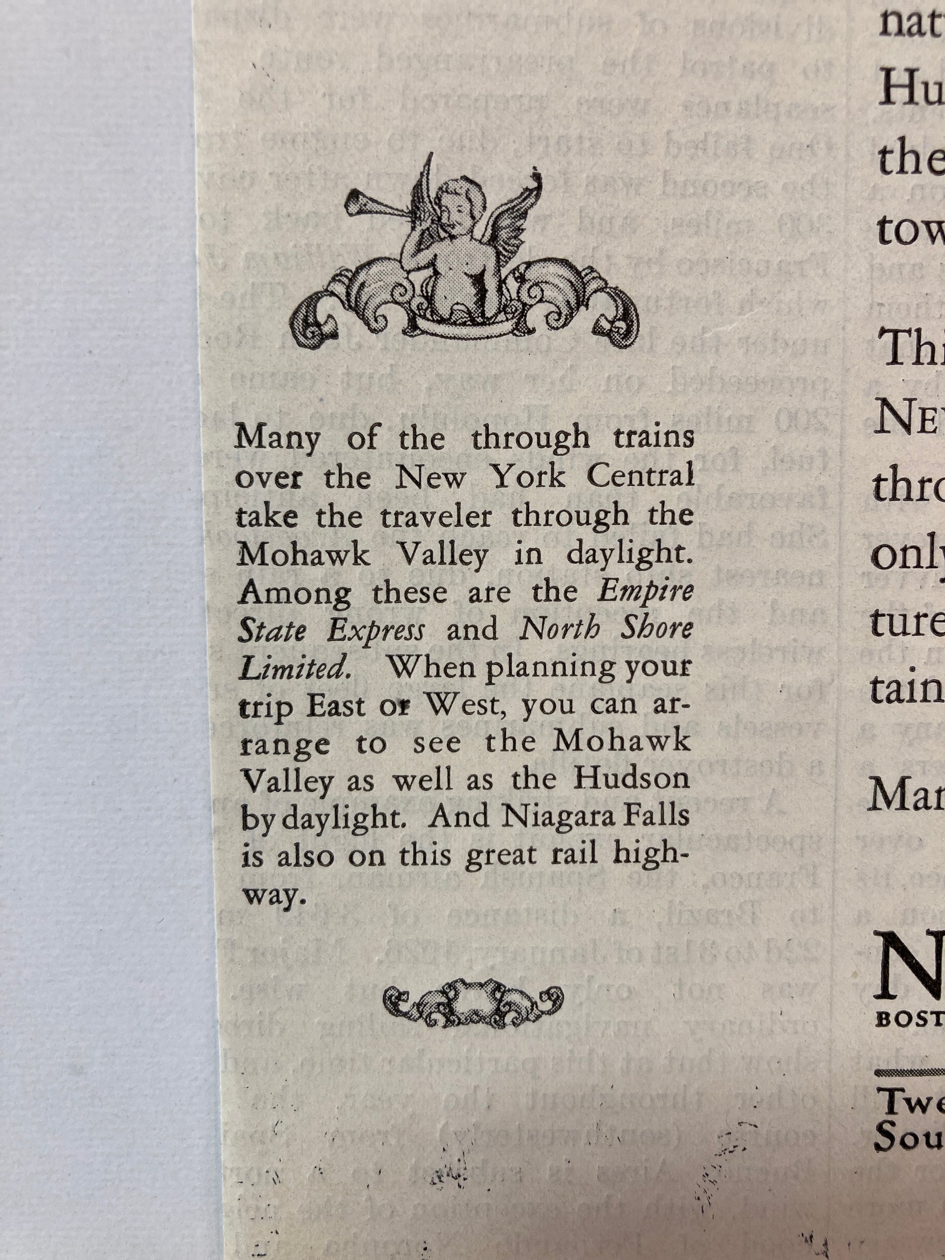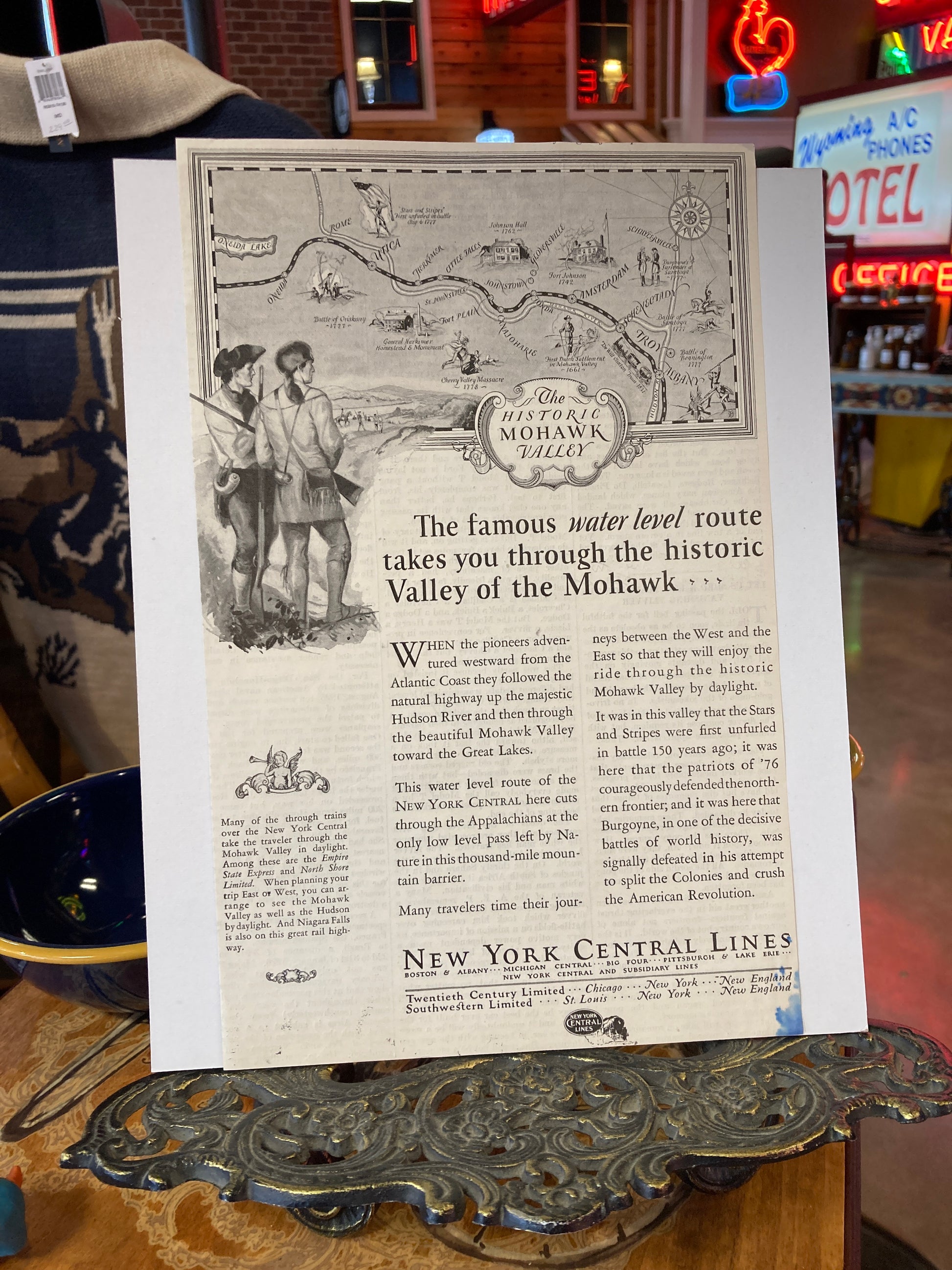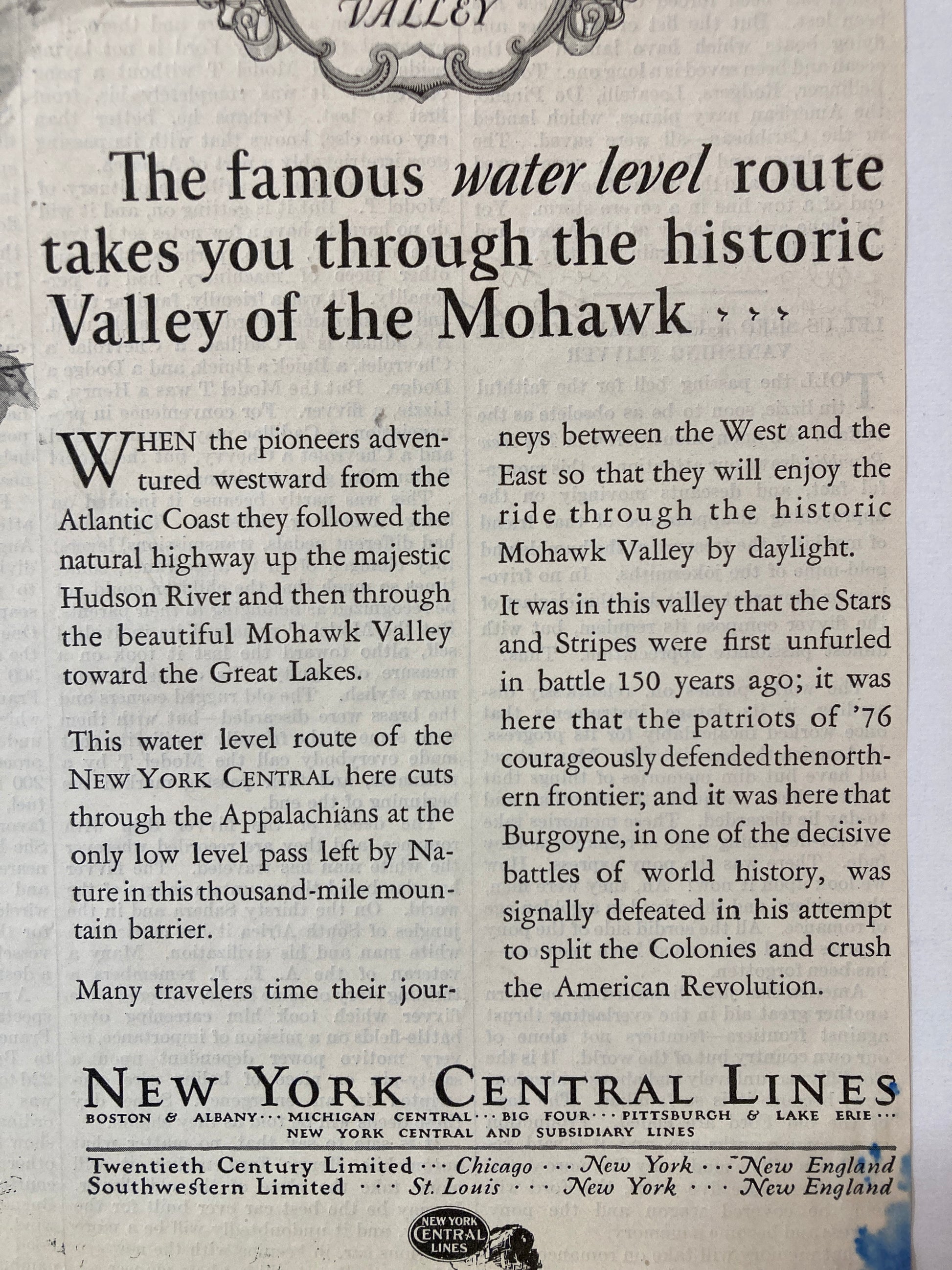 New York Central Lines Vintage Ad. 7 x 11 inches Suitable for framing. In fair vintage condition, well take care. Collectors item, interesting wall decor for train lovers and a piece of history as well.
