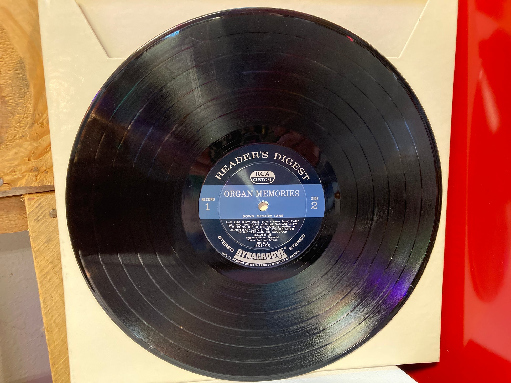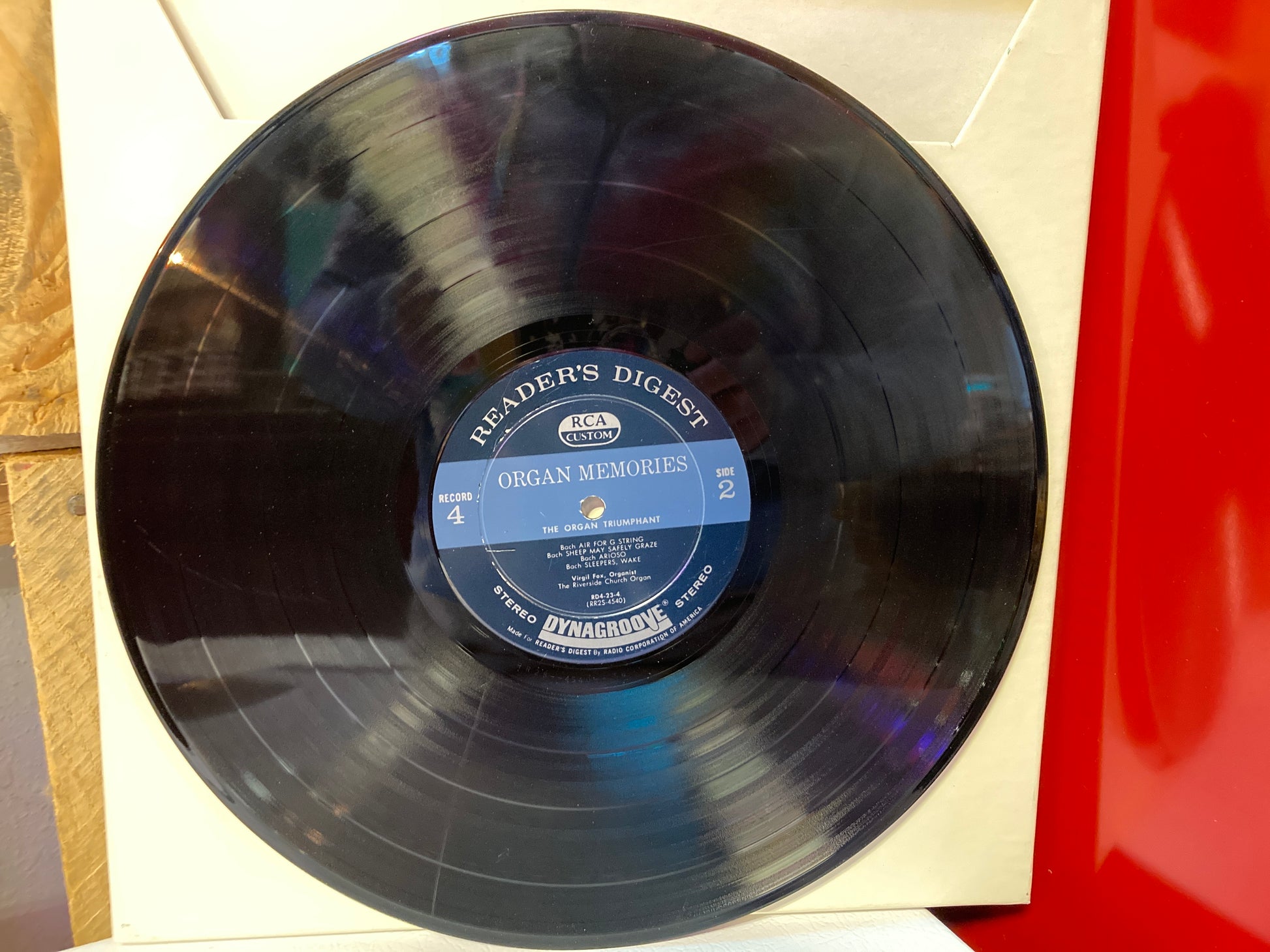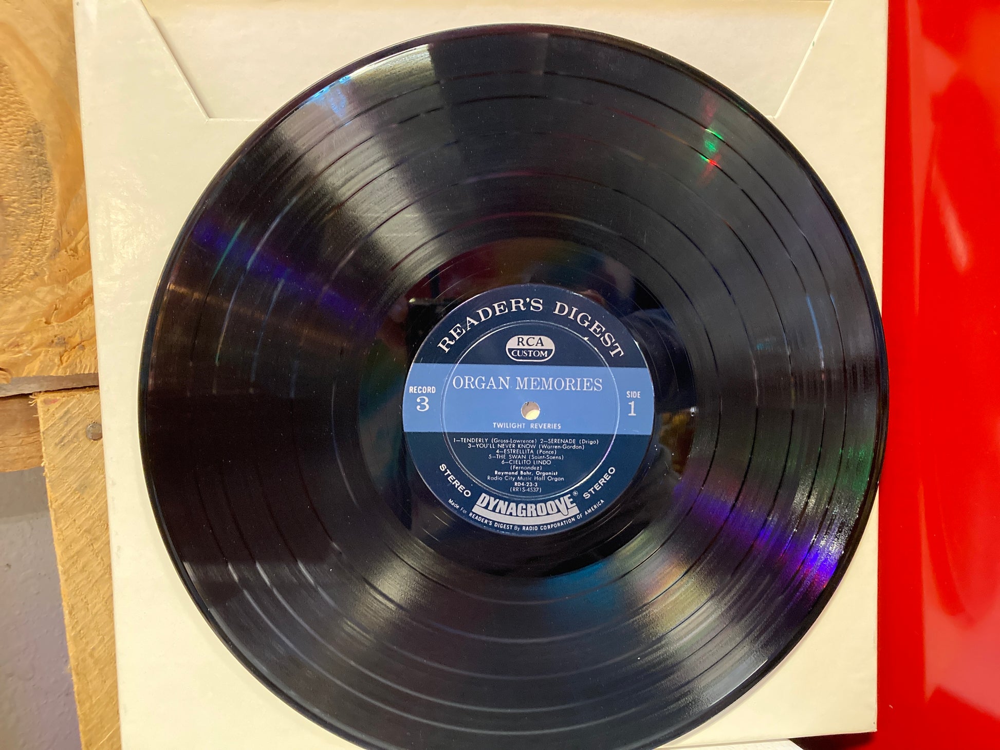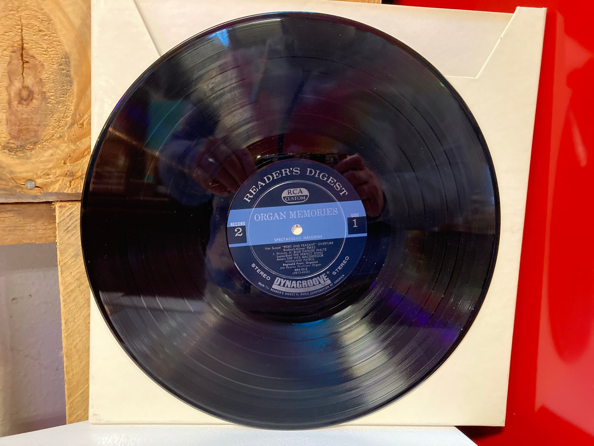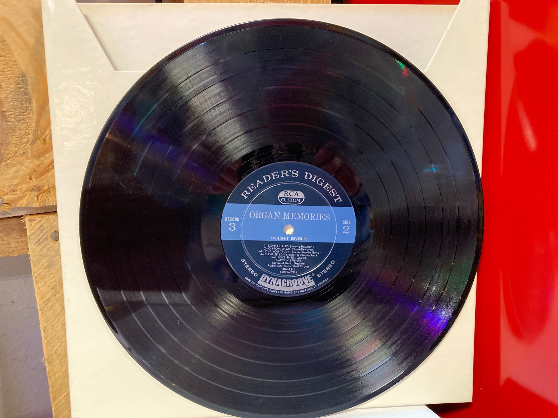 Organ Memories 4 record box set. 1. Down memory lane 2. Spectacular Melodies 3. Twilight Reveries 4. The Organ Triumphant. In fair used condition, Box is worn, vinyl is in great shape. Collectors item.