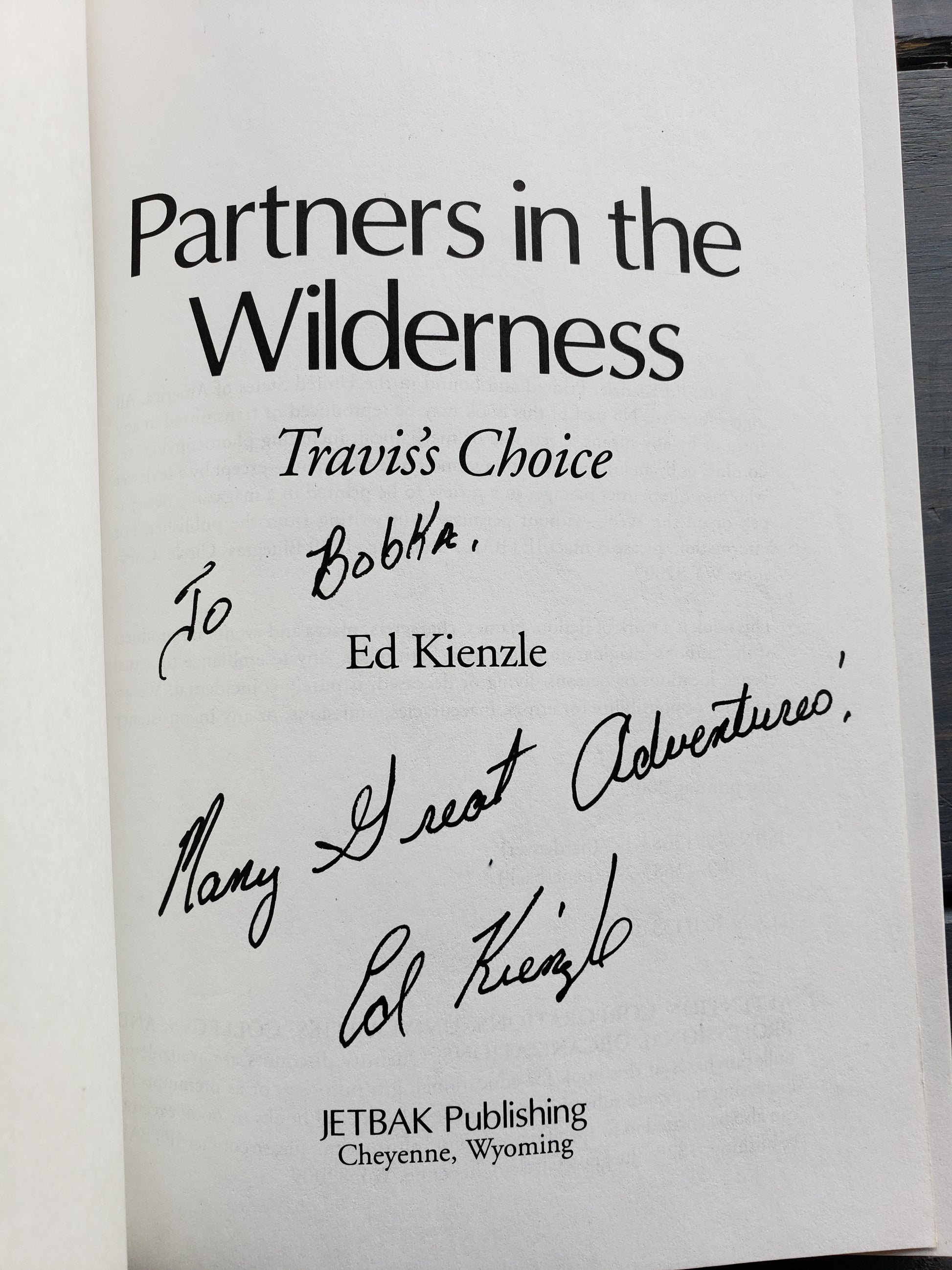 Partners in the Wilderness Travis's Choice, autographed copy by Ed Kienzle