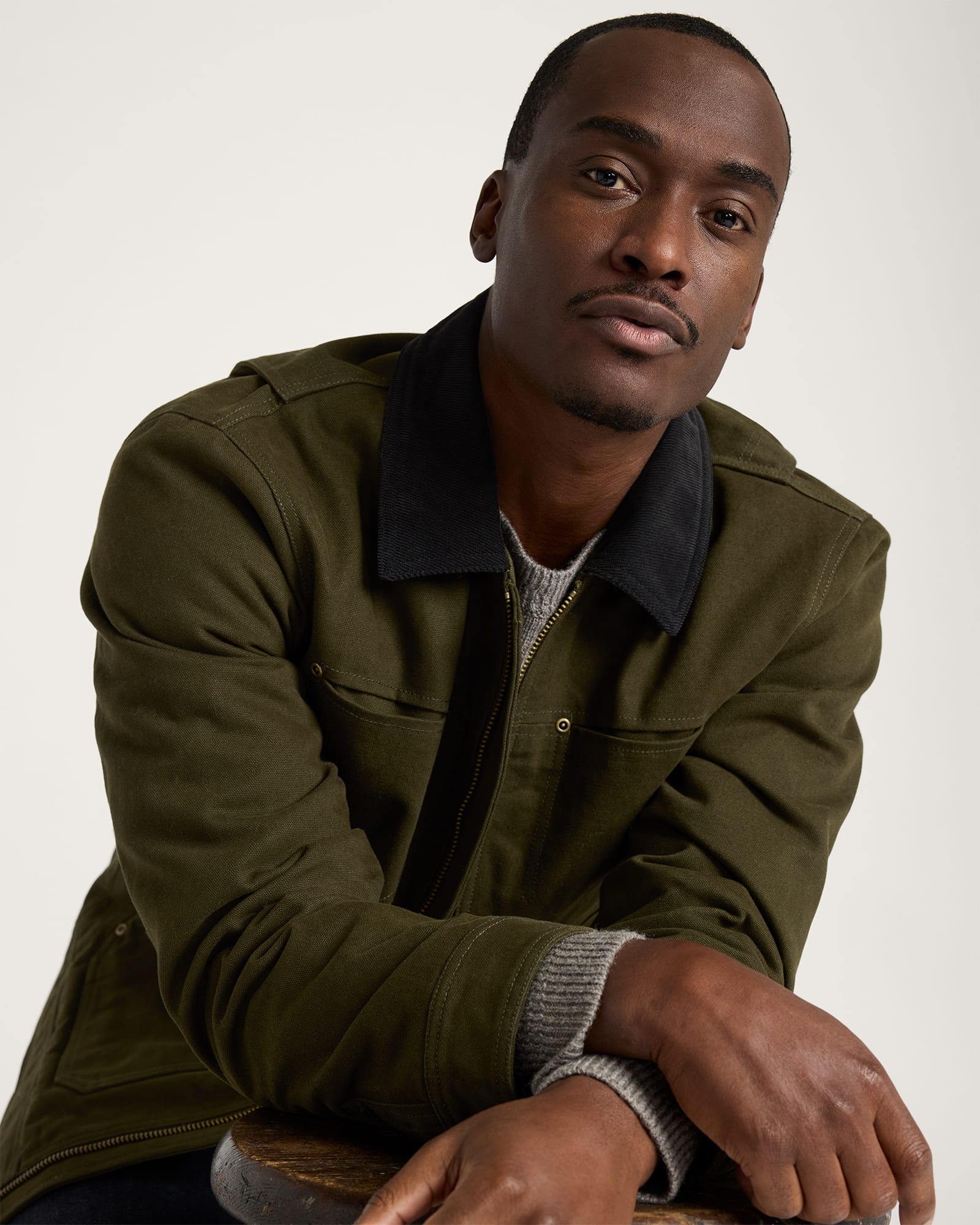 Meet your new favorite chore jacket. Made from rugged 12-oz. Big Sky Canvas in a workwear-inspired design, this lightly insulated zip-front men's coat has a wool blend plaid upper for added warmth, cotton lower lining, and polyester-lined sleeves for easy on-and-off. Multiple pockets add extra functionality. Corduroy collar.