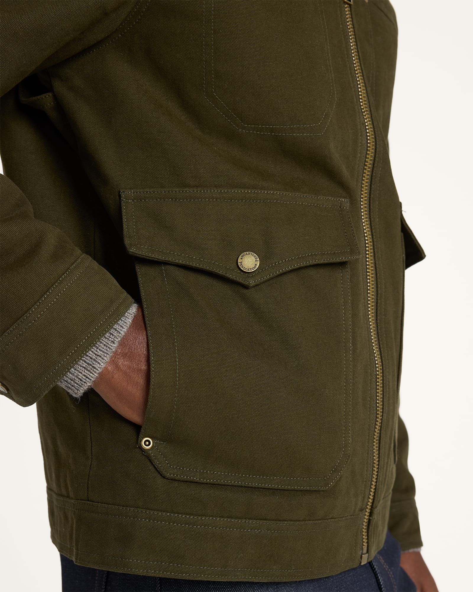 - Shell: 100% cotton canvas; trim: polyester/nylon; Upper lining: 60% wool/40% polyester; lower lining: 100% cotton; sleeve lining: polyester.
