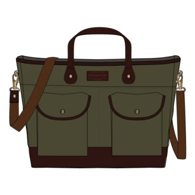 The new Odyssey Collection features masculine pieces fashioned of high end waxed canvas, with custom leather trim inspired by western boot stirrups. Each piece is exquisitely crafted for function, style and lasting quality. Pendleton Olive Messenger Bag in Green canvas with leather trim. Two outer snap pockets, adjustable shoulder strap plus two leather grab handle, two open inner pockets, a laptop sized pocket and an inner zip pocket. Measures 16 x 12 x 6 inches.
