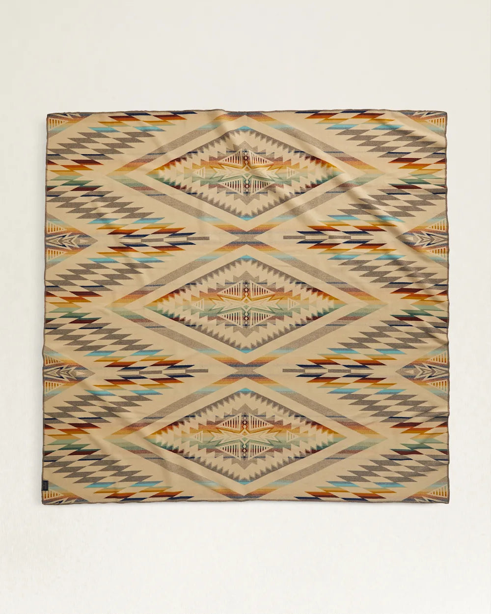 This colorful pattern was inspired by the Summerland Trail in Mt. Rainier National Park, voted Best Wildflower Spot in the USA by 1889 Magazine. Vibrant bands of color capture the wildflowers, waterfalls and mountain views within the park. Crafted from pure virgin wool/cotton, the reversible jacquard has two distinct looks. Pair with the matching Summerland Trail Sham. 64 x 80 inches.