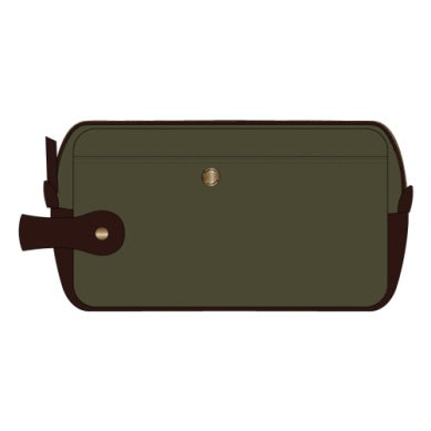 The new Odyssey Collection features masculine pieces fashioned of high end waxed canvas, with custom leather trim inspired by western boot stirrups. Each piece is exquisitely crafted for function, style and lasting quality. Pendleton Travel Kit in Olive is green canvas with a leather handle and trim. Brass zipper with a leather pull, inner mesh pockets and outer snap pocket. Just right for toiletries and travel necessities. 10 x 9 x 4 inches.