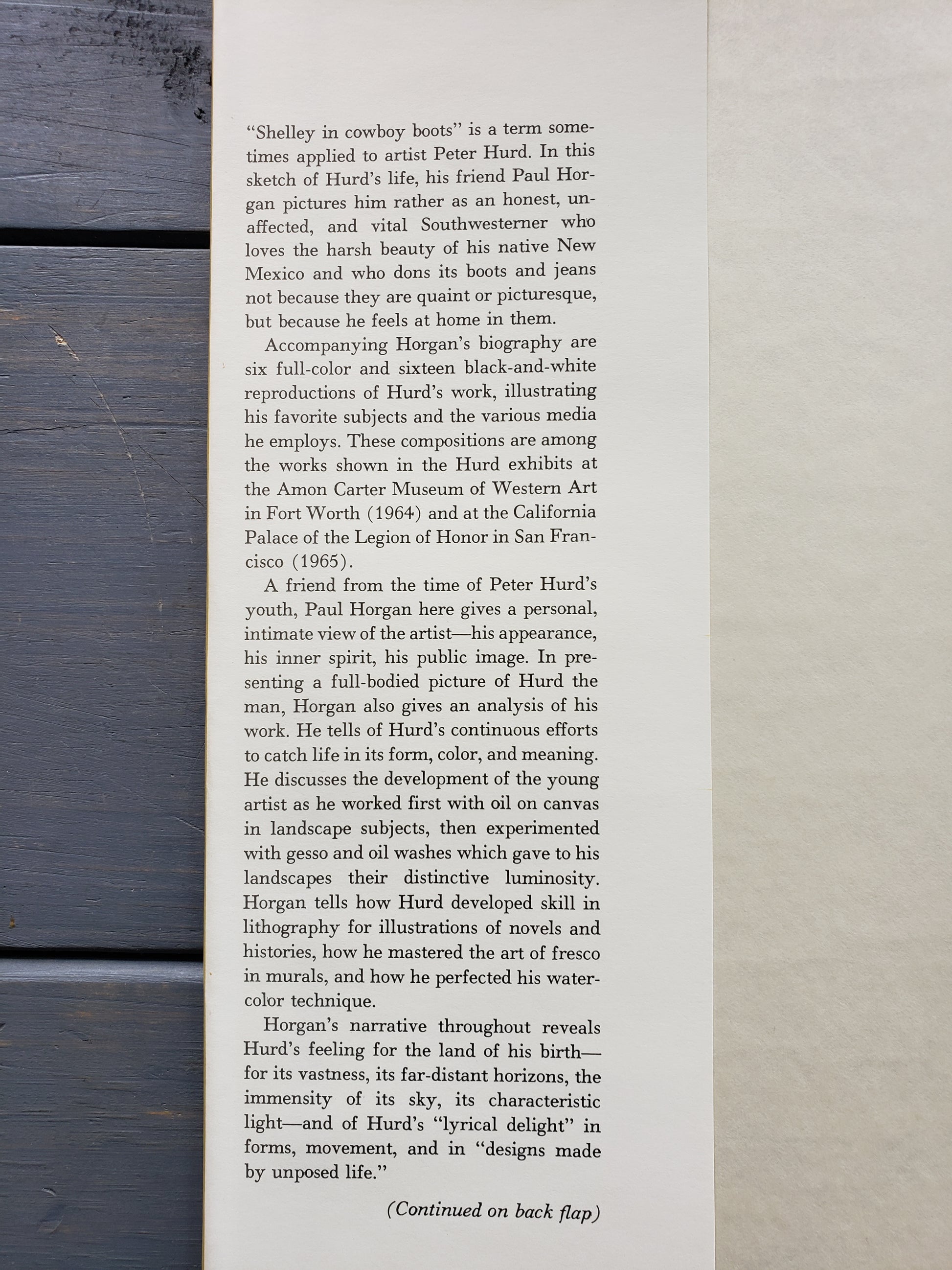 Be inspired by the vivid and masterful strokes of this 3rd edition hardback, "Peter Hurd, A Portrait Sketch from Life" by Paul Horgan. With 68 pages and a dust jacket included, experience the intimate portrait of this renowned artist and his work firsthand. Add this gem to your collection today. Fair condition.