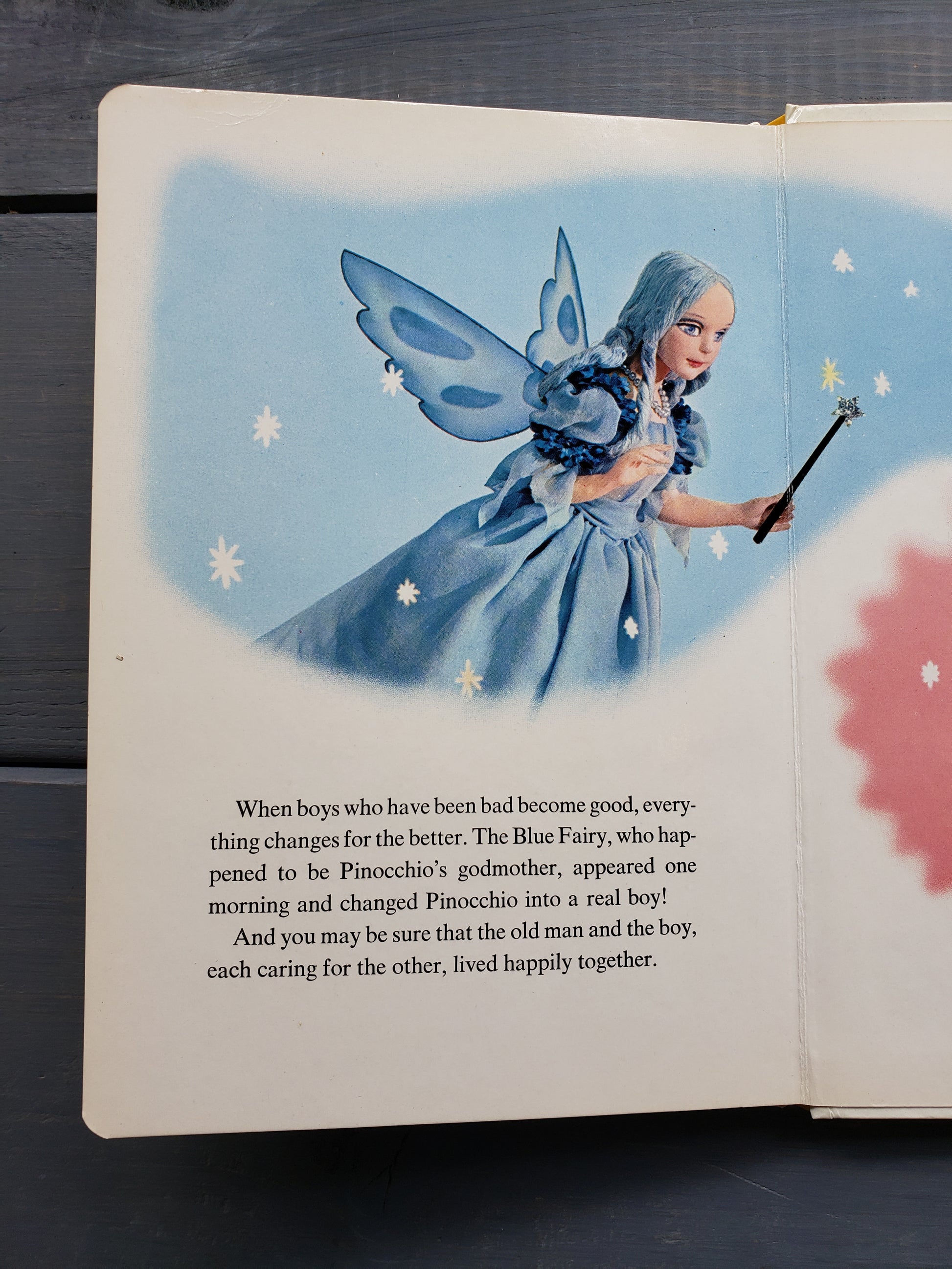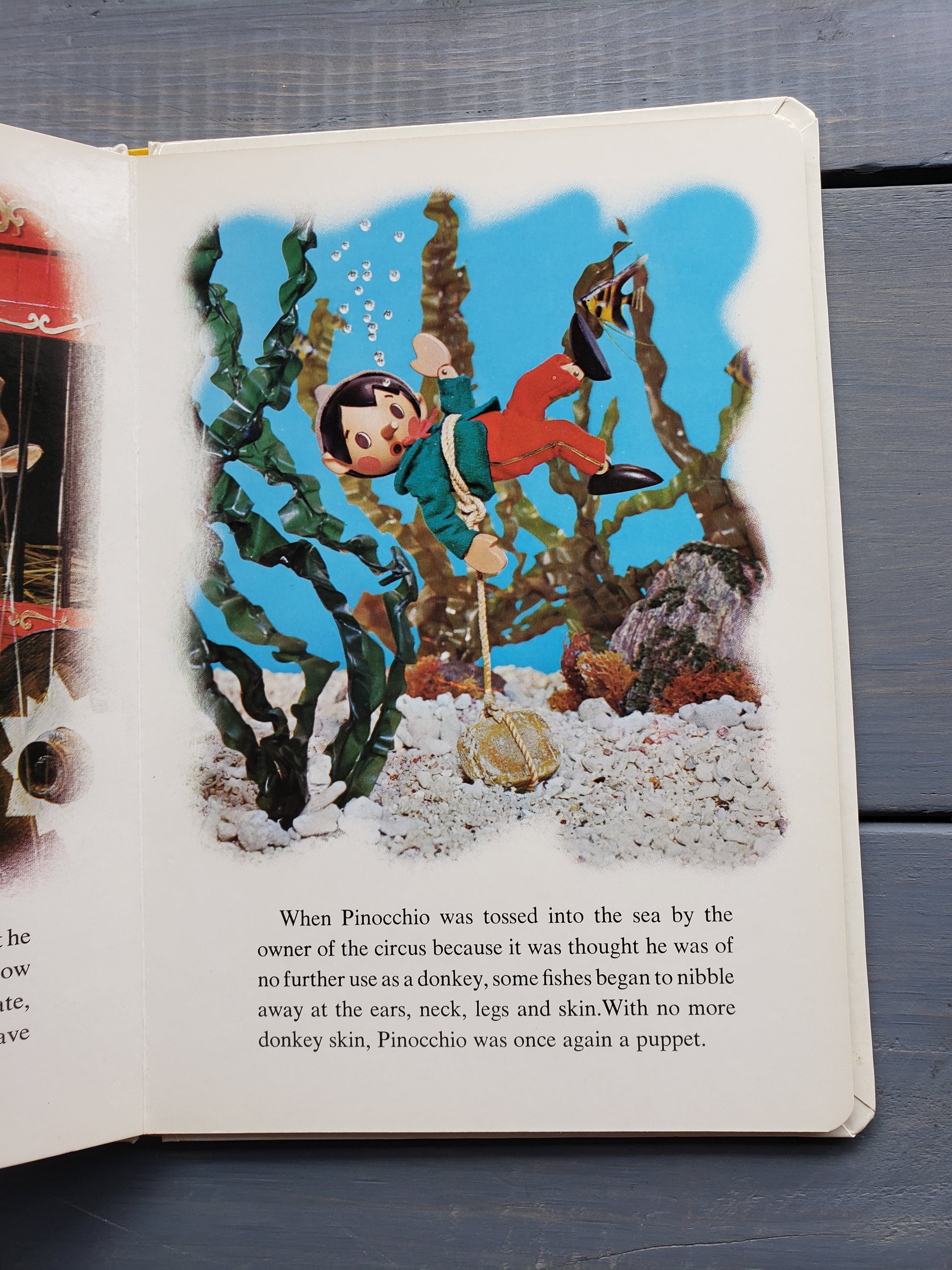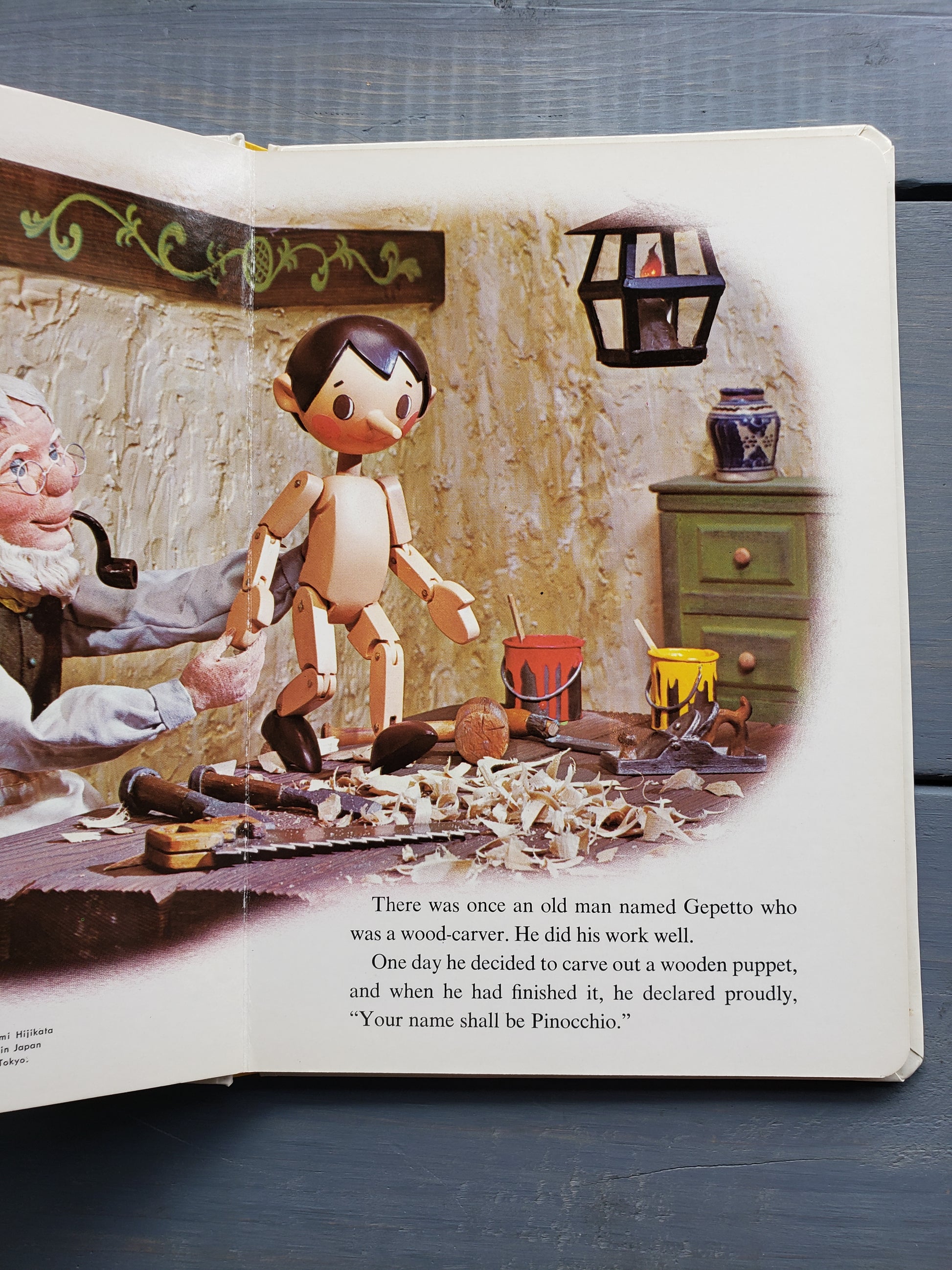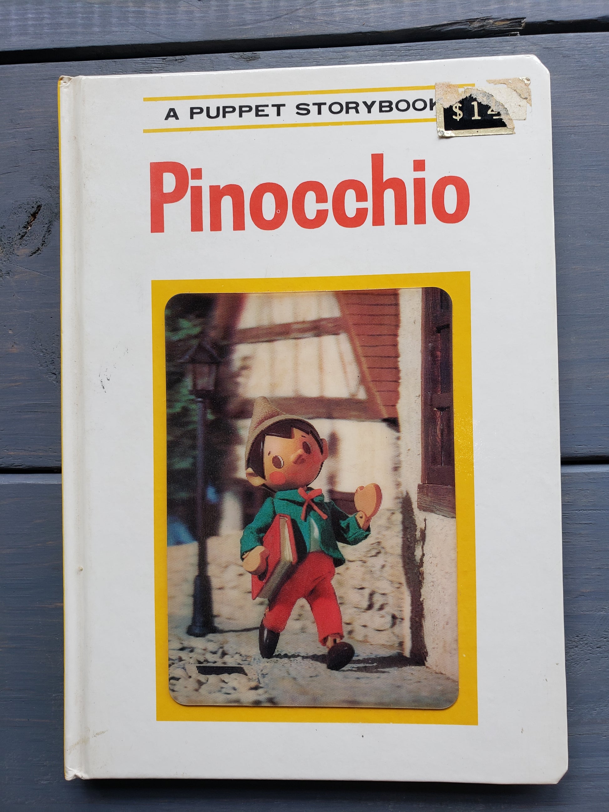 Vintage board book features the story of Pinnochio. Colorful pages that are easy for little hands to turn. Classic book in fair vintage condition.