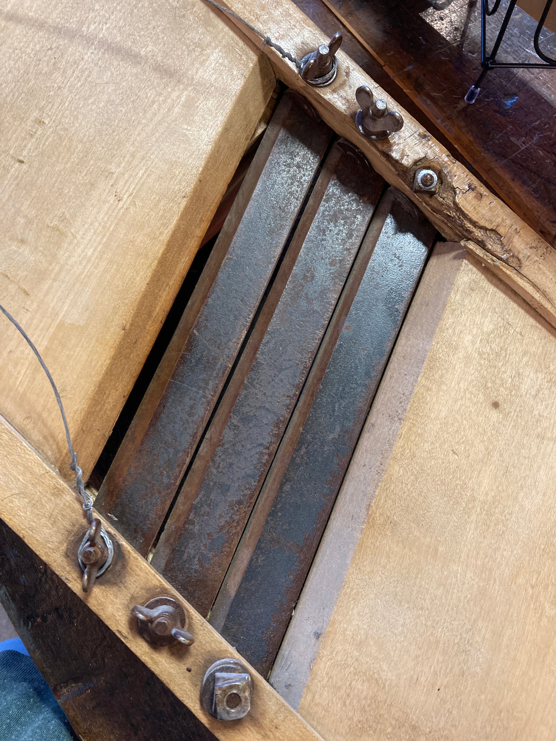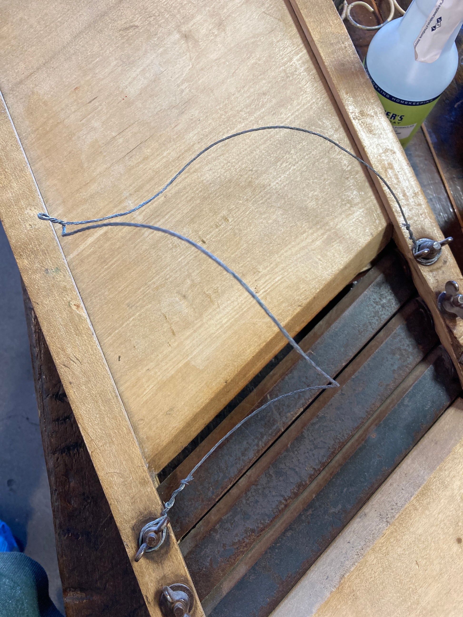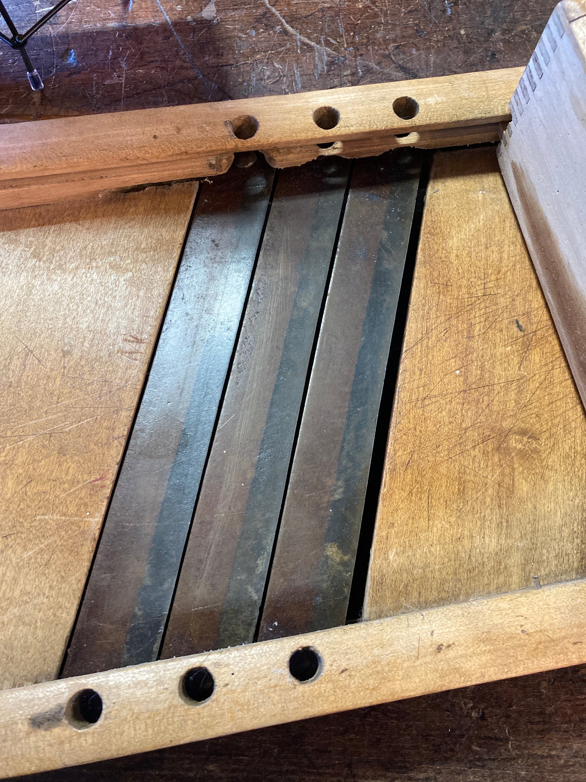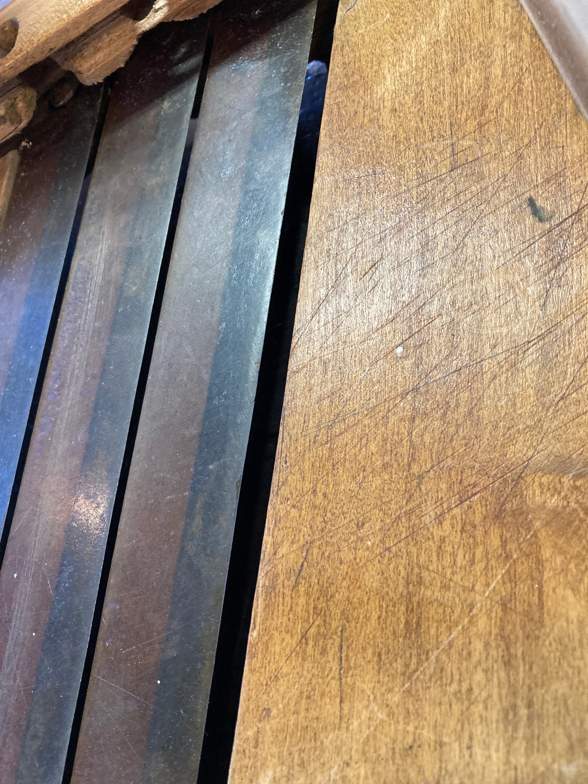 Primitive Cabbage Slicer, 30 x 11 inches.