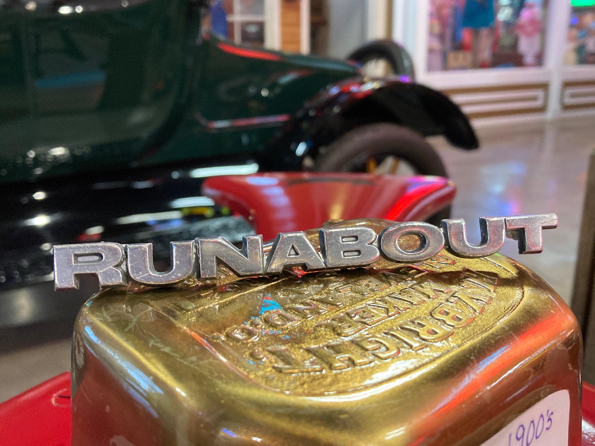 Runabout Car Emblem. 5 1/2 inches long. Well taken care of, plastic, solid shape. Slight bent. Collectors item. Fair used condition.