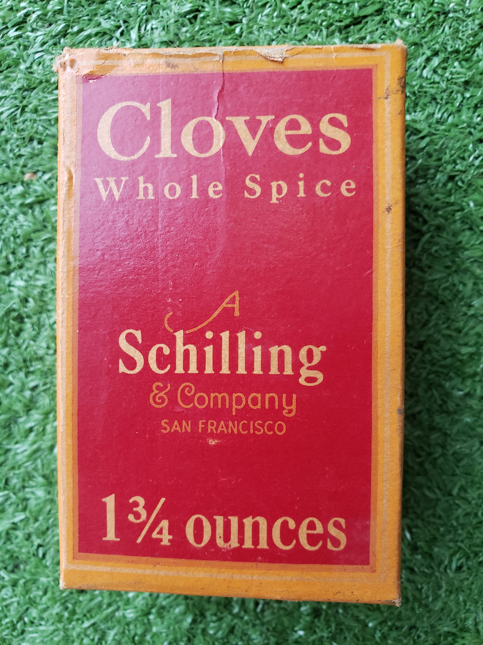 Add a touch of rustic charm to your kitchen with this vintage Schilling Cloves box. Featuring original, outdated contents, it’s perfect as farmhouse décor that sparks nostalgia and conversation. Display it proudly to bring warmth and character to your home while celebrating a classic piece of culinary history.