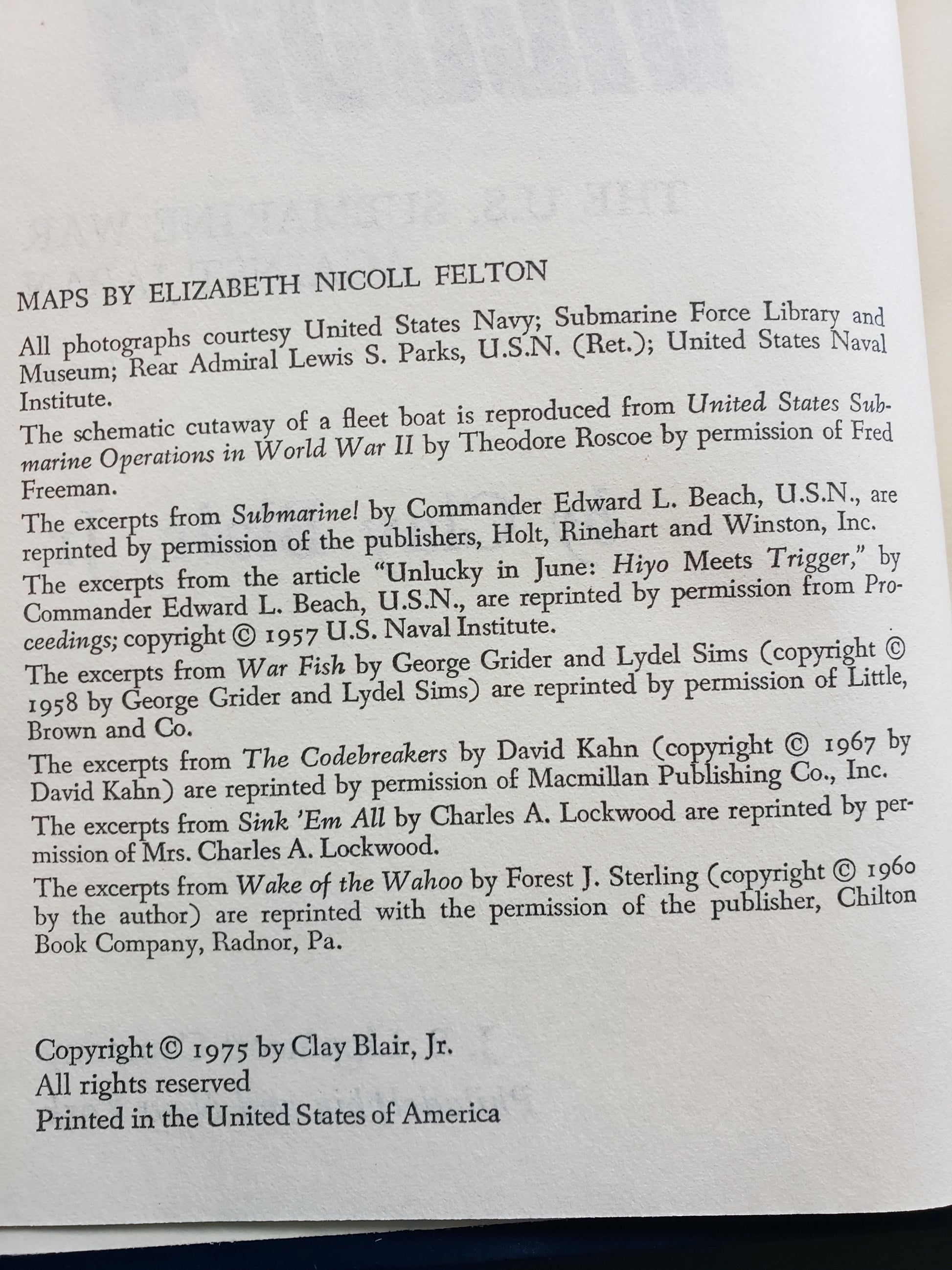 Dive into one of the most comprehensive accounts of America's submarine warfare during World War II with this classic historical work. Clay Blair Jr.'s "Silent Victory" Vol. 1 delivers meticulous research and compelling narratives that bring the silent service to life, chronicling the strategic operations and heroic crews who shaped the Pacific campaign. This 524-page hardback edition from 1975 remains an essential reference for military history enthusiasts and WWII scholars. Though pre-owned in fair condition, this substantial tome offers tremendous value for collectors and readers seeking authentic, detailed documentation of submarine warfare's pivotal role in defeating Japan.
