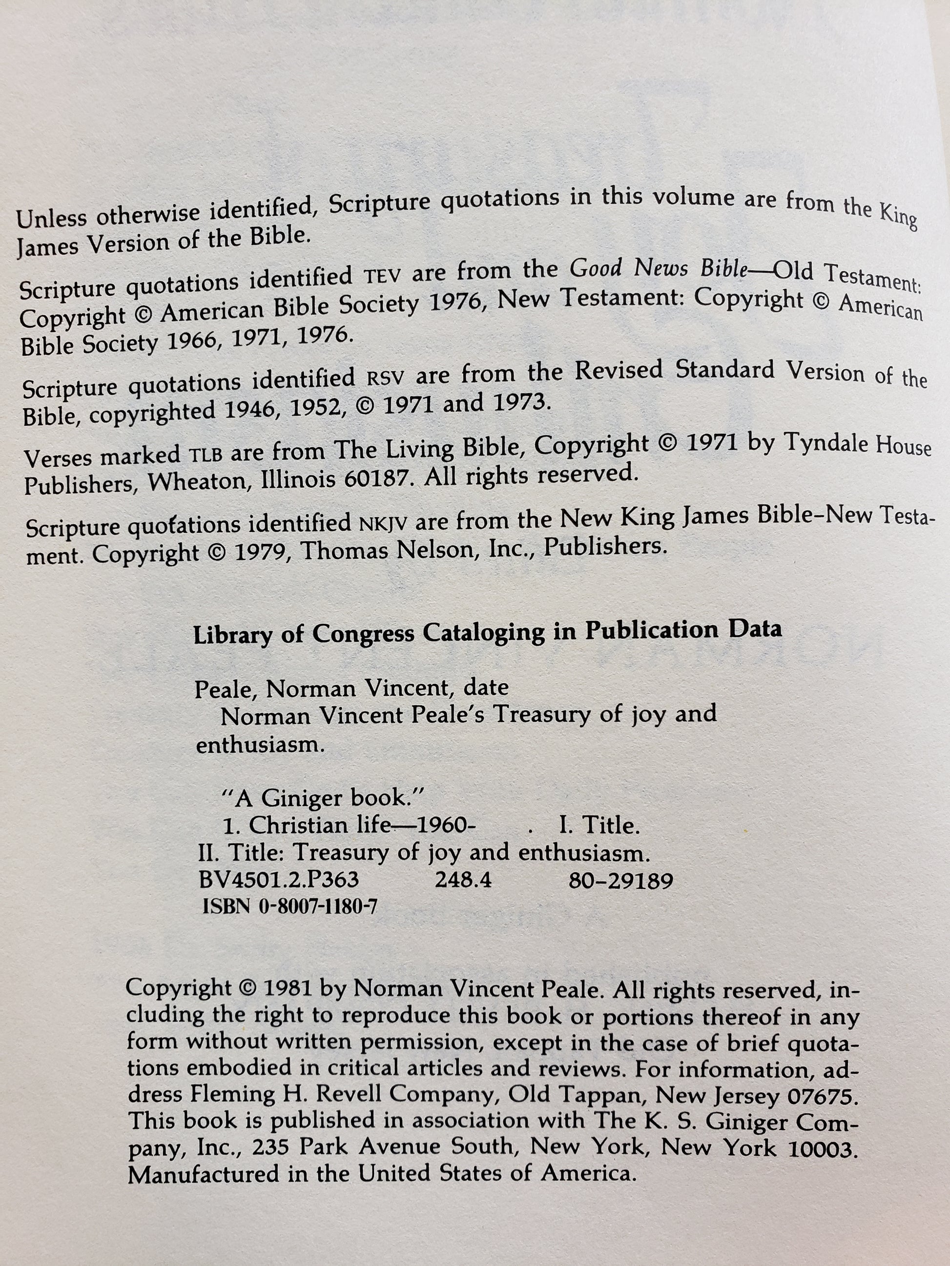 Treasury of Joy and Enthusiasm by Norman Vincent Peale's