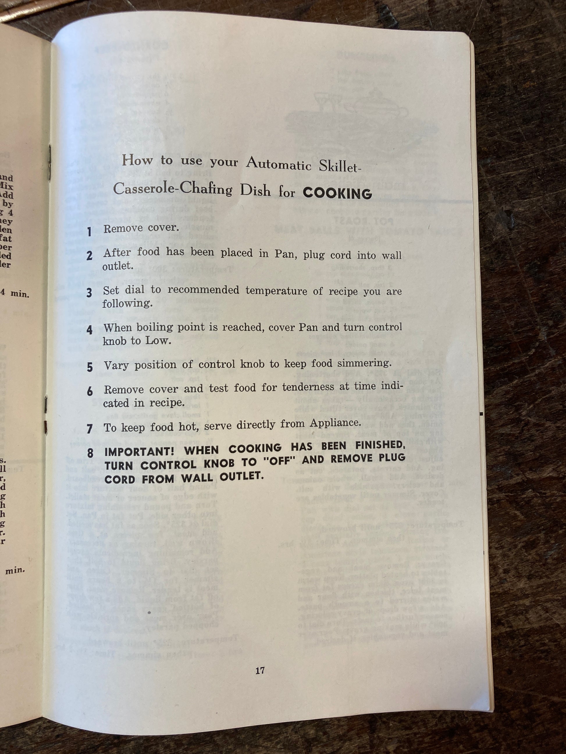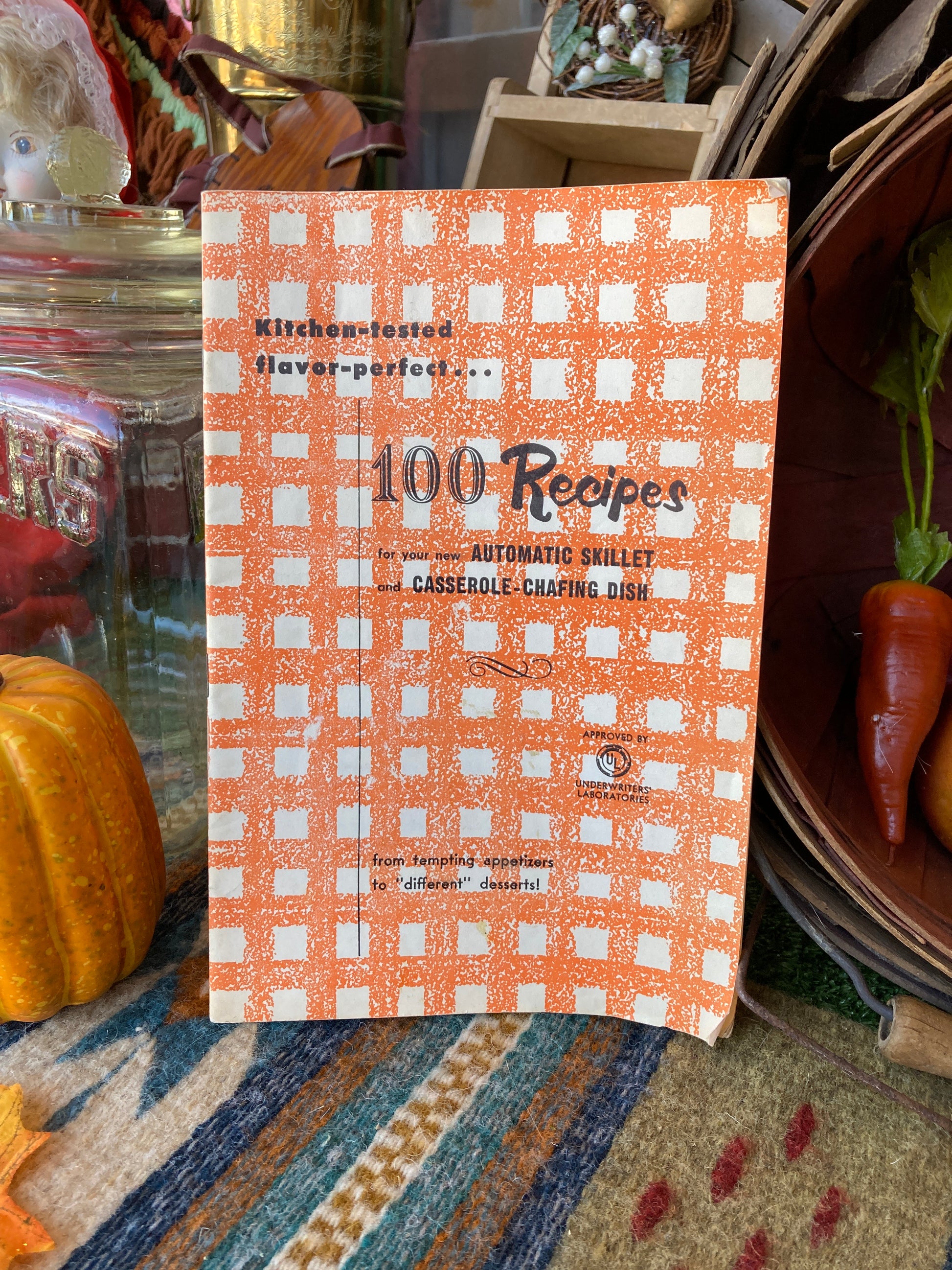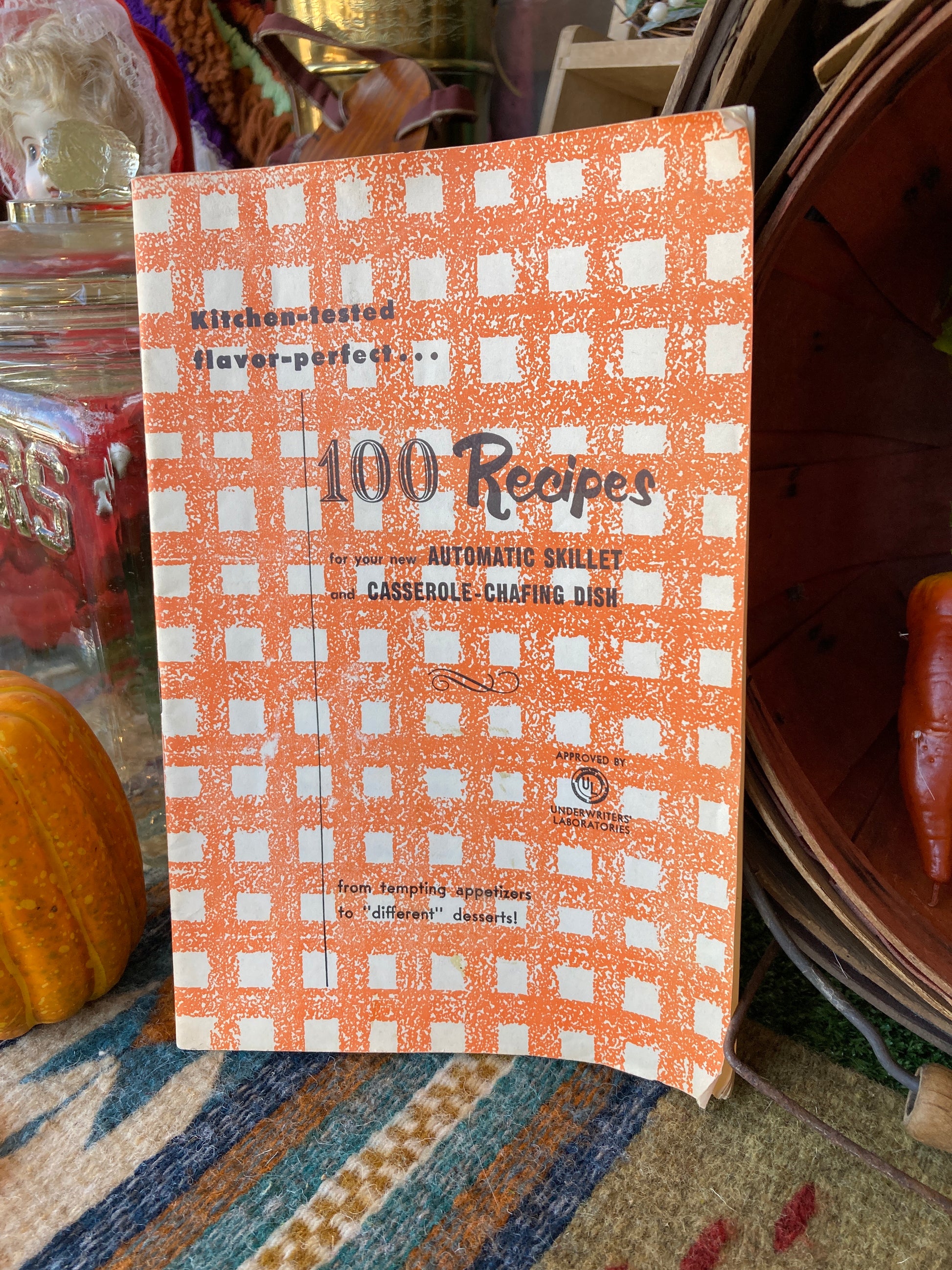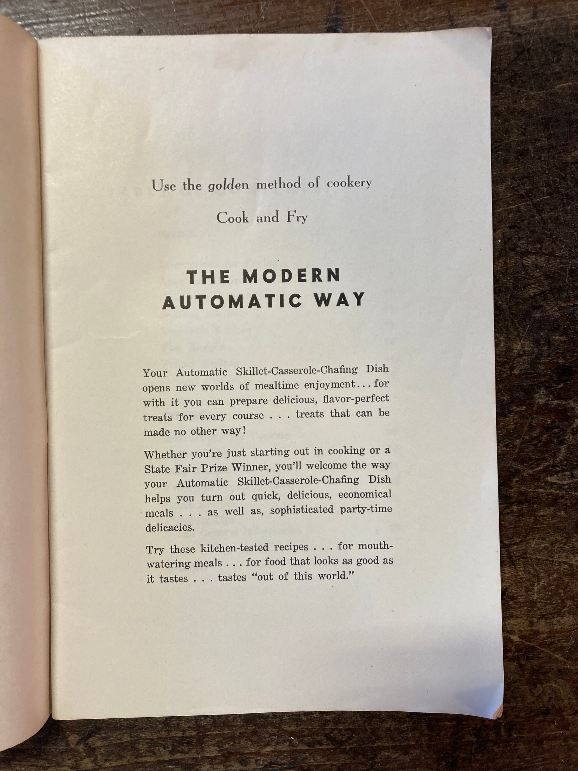 1950s Cookbook, 100 Recipes for your Automatic Skillet and Casserole Chafing Dish, 28 pages. In fair vintage condition.