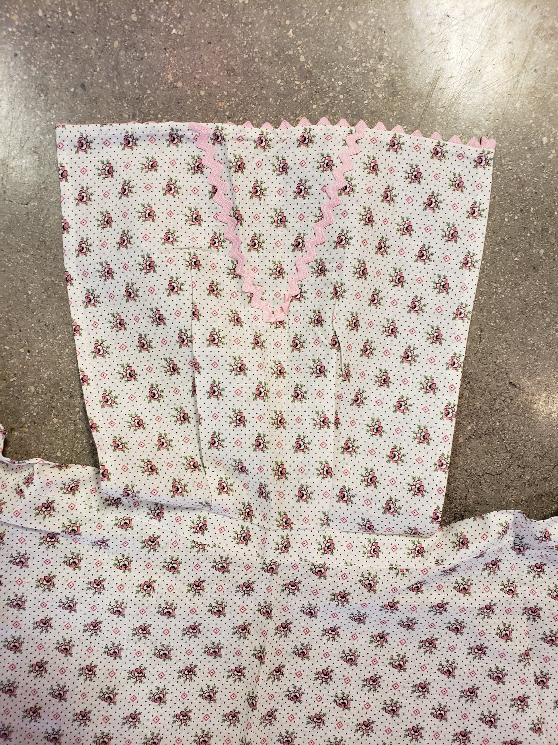 Bring a touch of retro charm to your kitchen with this vintage-style pinner apron. Its crisp white fabric, dotted with sweet pink flowers, adds a playful pop of color while keeping you clean during all your culinary adventures. Perfect for baking, crafting, or simply adding a dash of fun to your day. Fair vintage condition.
